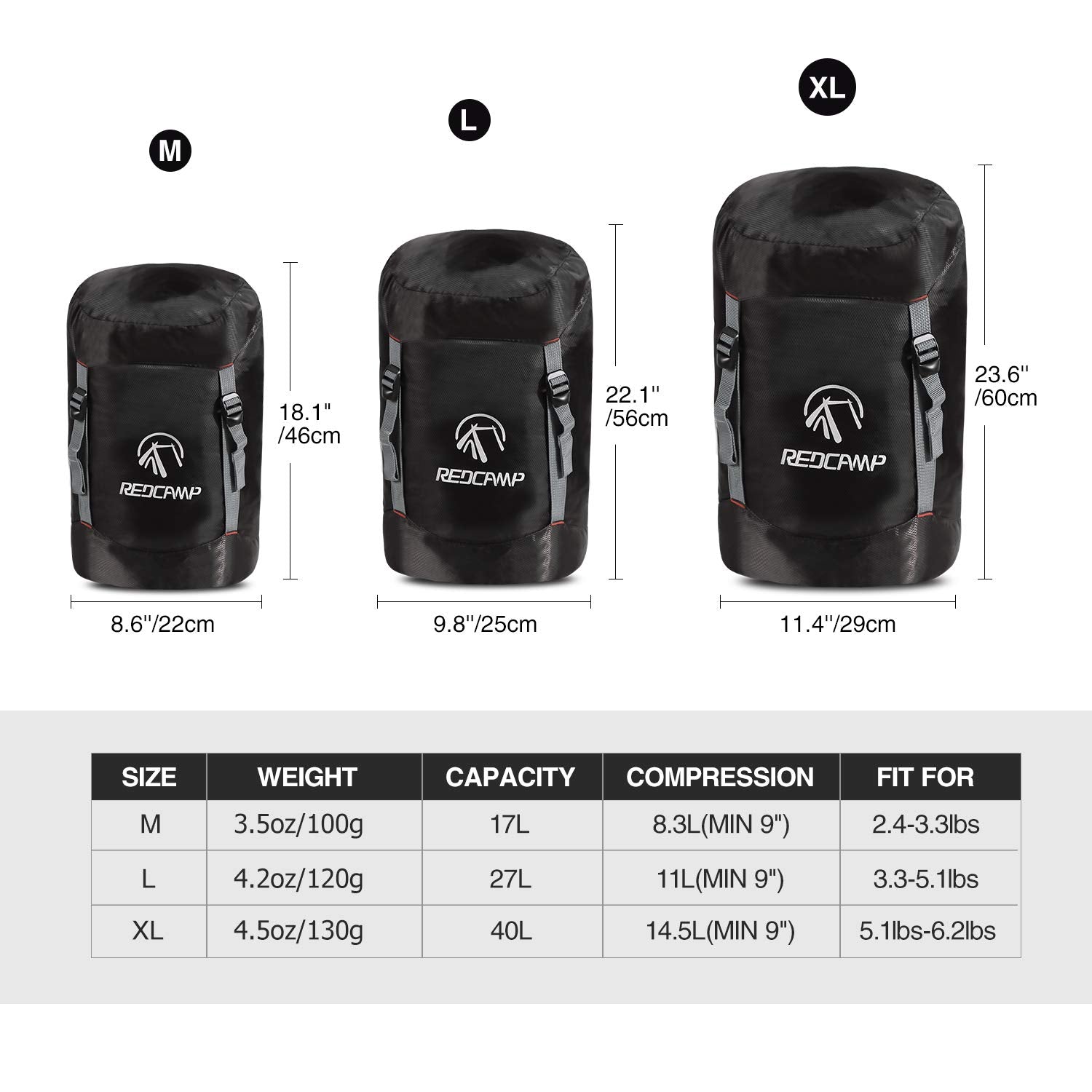 REDCAMP Compression Stuff Sack, 17L Lightweight Sleeping Bag Compression Sack Great for Backpacking, Hiking and Camping, Black