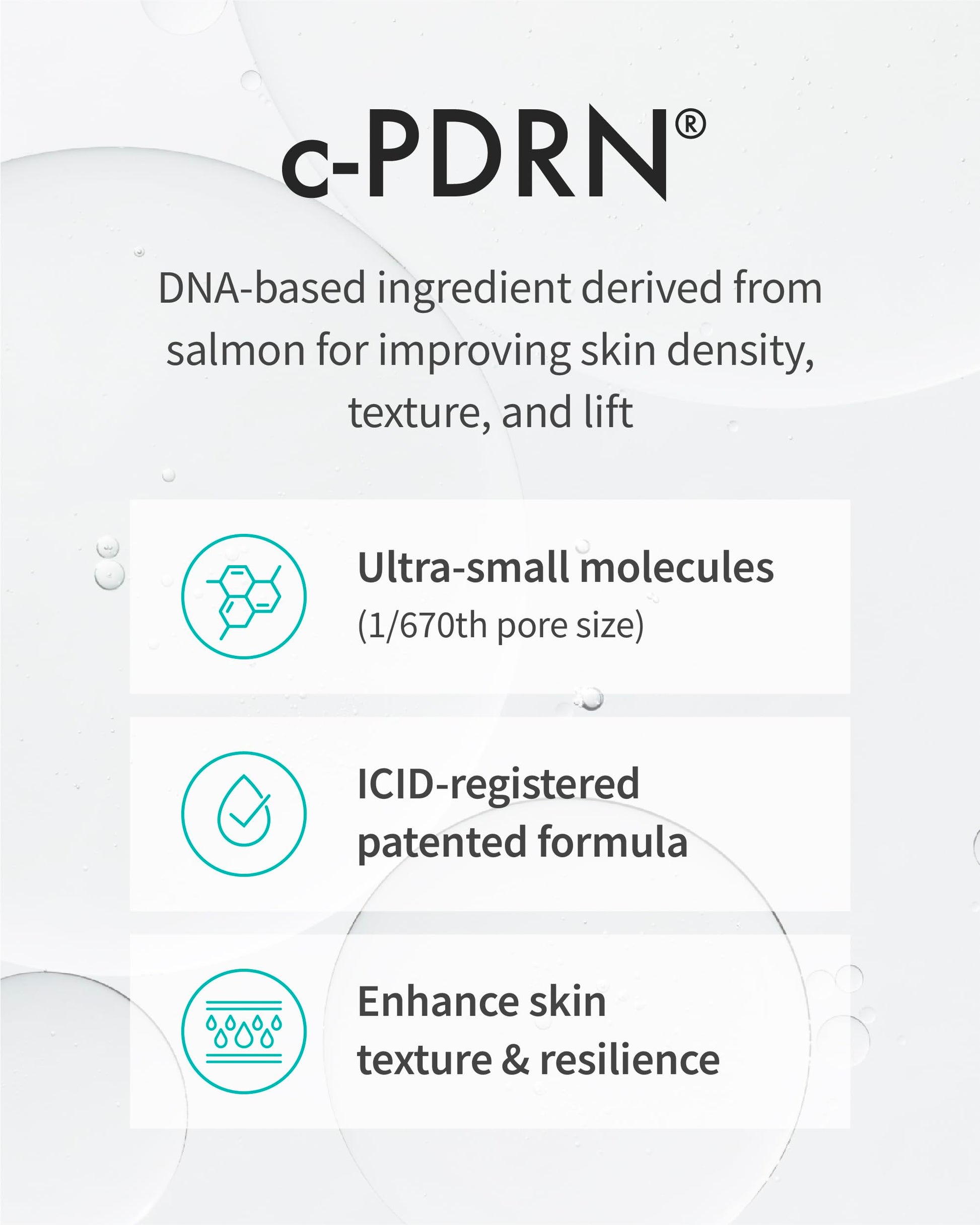 - C-PDRN TECHNOLOGY: Our patented c-PDRN formula, with 0.5% concentration, delivers potent skincare benefits. This ampoule, available without a prescription, boosts collagen production, enhances regeneration, and improves elasticity and firmness. It reduces wrinkles and fine lines while enhancing skin texture and resilience for a smoother, youthful complexion.