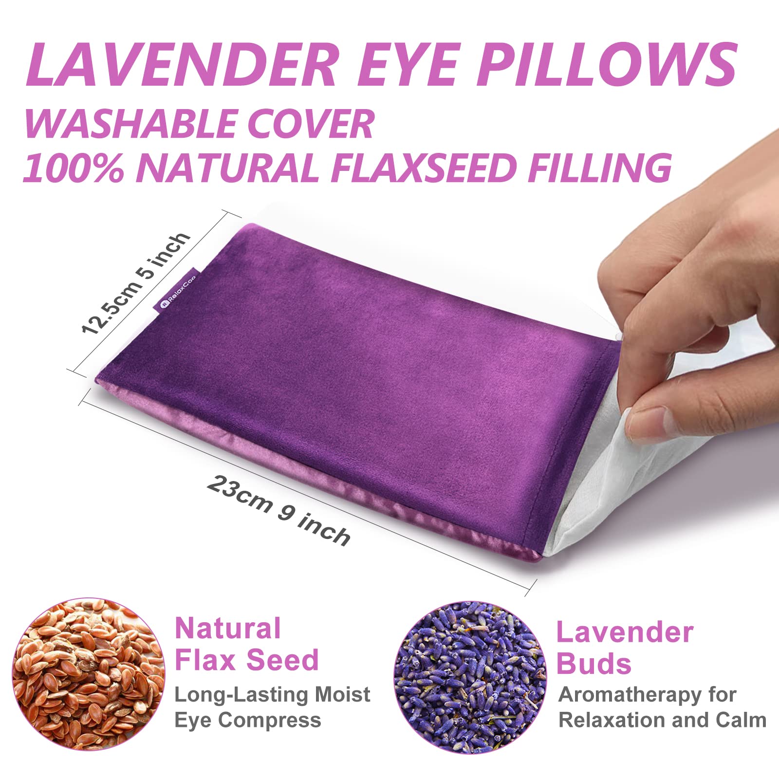 - Aromatherapy eye pillows: Filled with flaxseeds and lavender buds, the soft scent of lavender is calming and soothing, making it the perfect lavender eye pillow weighted for yoga, spa and meditation. Ideal flaxseed eye pillows to relieve tension and stress during a busy day.