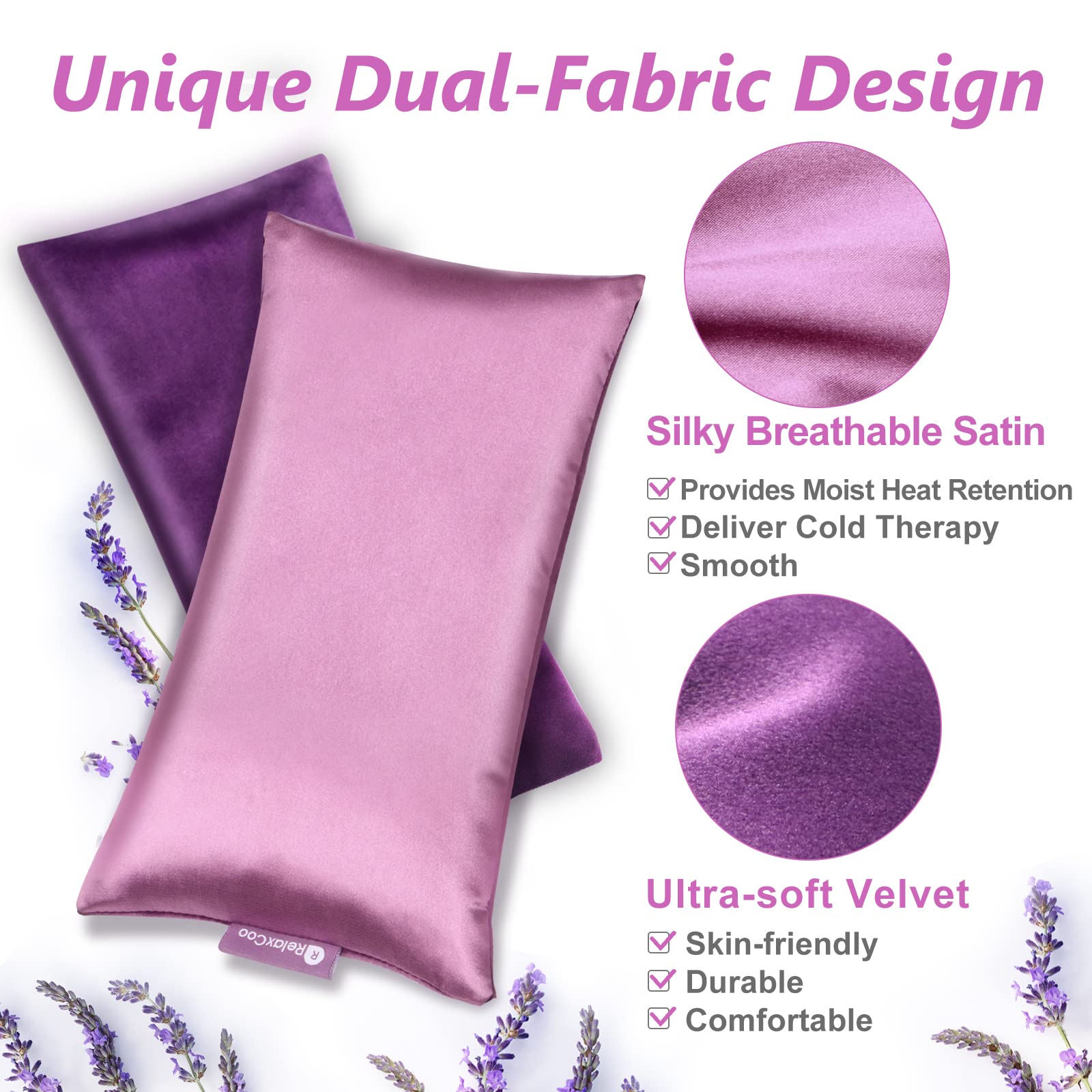 RelaxCoo Lavender Eye Pillow for Relaxation, Yoga, Sleeping, Weighted Eye Mask Heated for Headache, Sinus, Dry Eyes Relief, Moist Heat Eye Compress, Meditation Accessories with Aromatherapy, Pack of 2