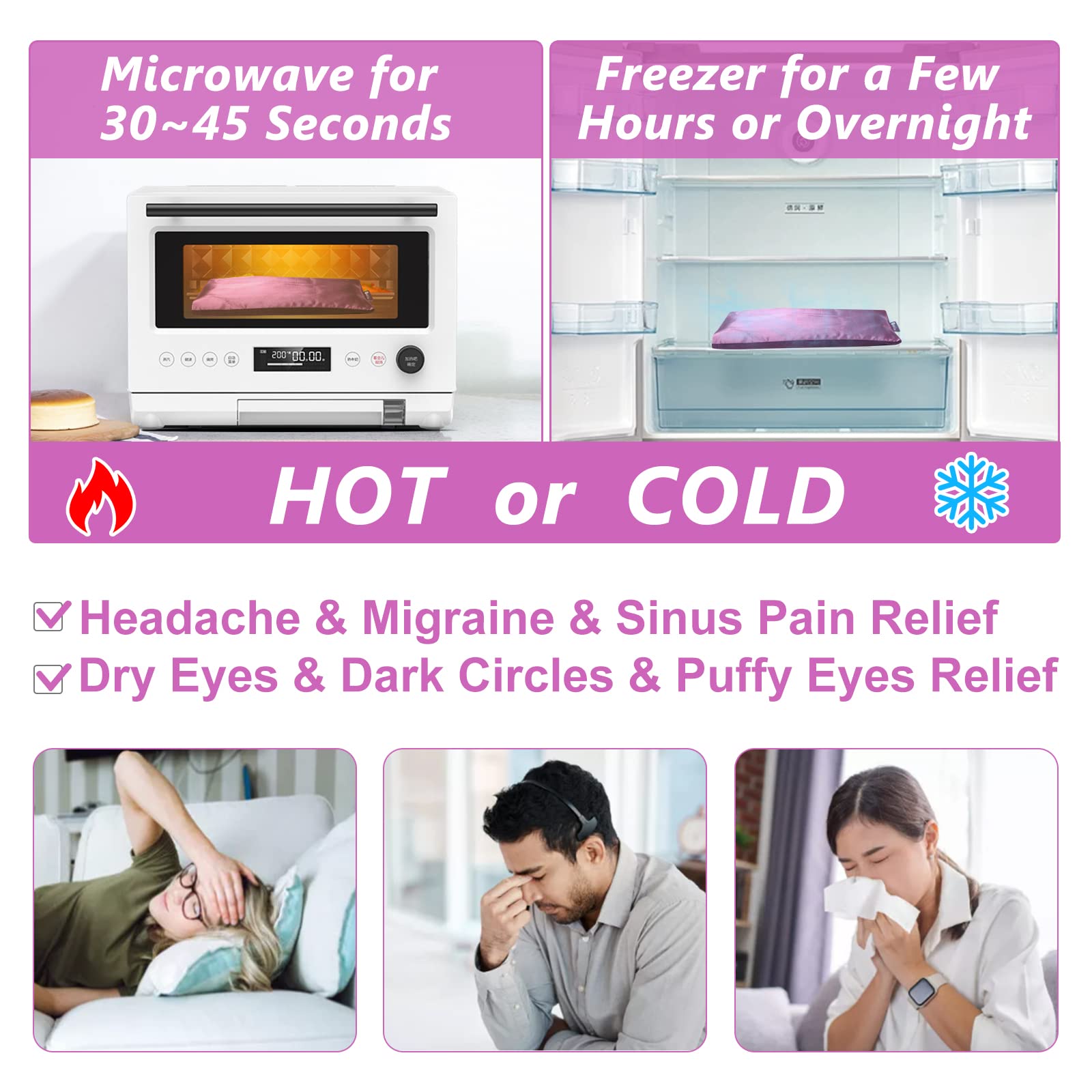 - Hot & Cold Compress: Microwave it for 30 seconds. eye sinus pillows weighted deliver moist heat and gentle pressure to relieve dry eyes, headaches, migraines, and sinus pain. Freezer for a few hours or overnight, the satin eye pillow will relieve your dark circles and puffy eyes, refreshing tired eyes strained by study or work.