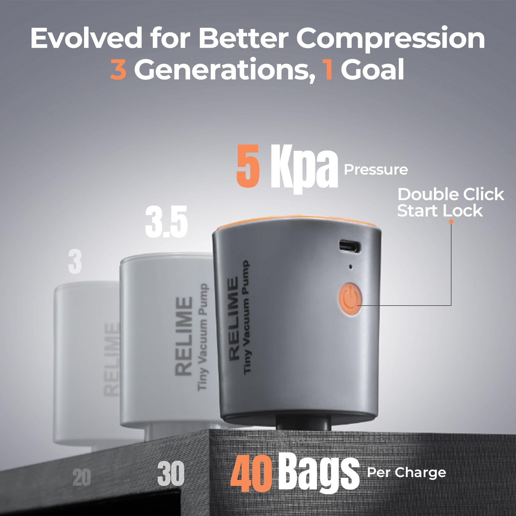 - 【Upgraded Vacuum Kit】Upgraded vacuum system ensure 5KPa suction (42% stronger vs. market 3.5KPa vacuum pump) slashes bulk by 50% at least. 2400mAh battery fuels 40 full compressions by one charge. Highly portable and convenient for travel storage. Double click power on prevent accidentally on in your luggage.