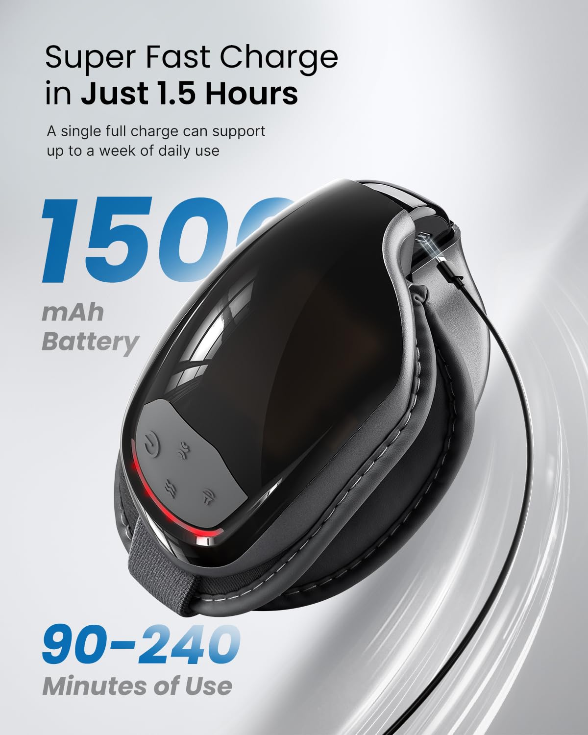 - Improved Performance & Memory Function: Freely customize your massage preferences from any of the available modes and create a truly unique experience. Upgraded tactile buttons allow for smooth accessibility. Effortlessly recall your custom massage modes with the convenient memory function. while the easy-to-clean PU material ensures safe & comfortable use,The headband has an unstretched circumference of 23.6 inches and the length of the headband is adjustable. Please check whether it fits your head and face size