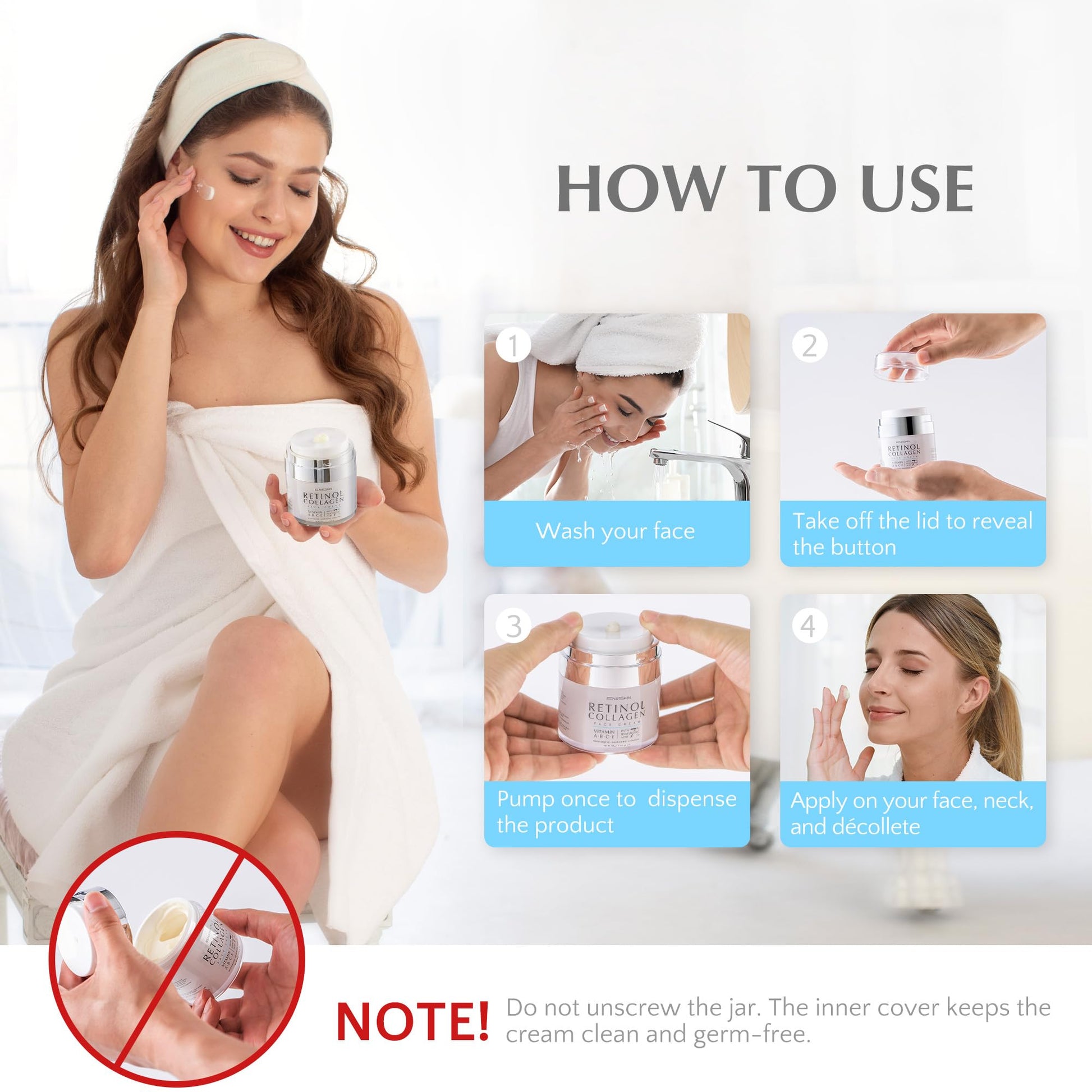 Retinol Anti Aging Face Moisturizer: Wrinkle Cream for Women, Collagen Day Night Repair Cream - Firming, Tightening & Lifting Neck Sagging Skin, 7% Hyaluronic Acid for Max Hydration, 1.7 Oz