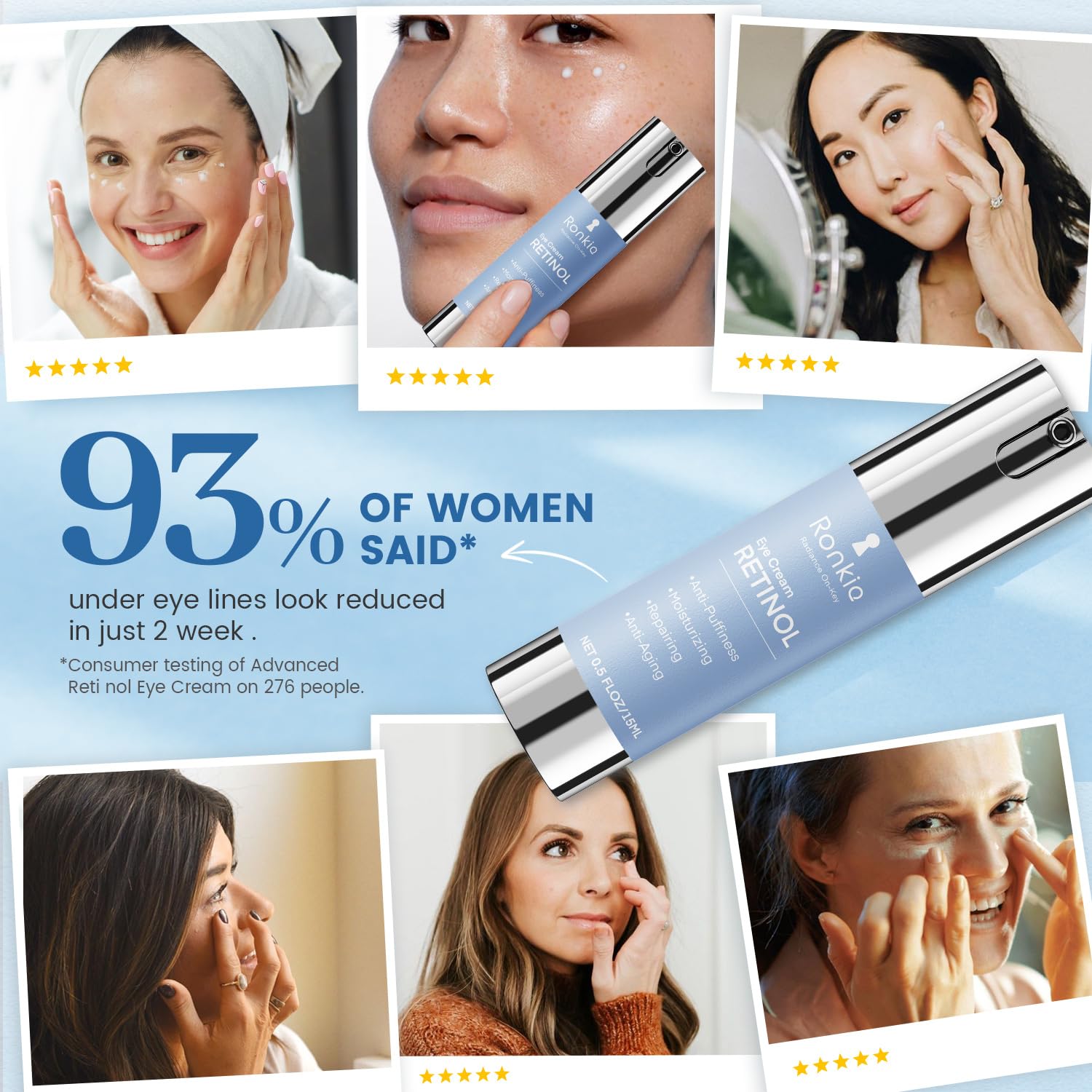 - Anti Aging eye care: Ronkie Retinol Eye Cream visibly densifies, smooths and boosts the delicate skin around the eyes for the maximum diffusion of light in all its dimensions, targeting puffiness, dark circles, fine lines and wrinkles.