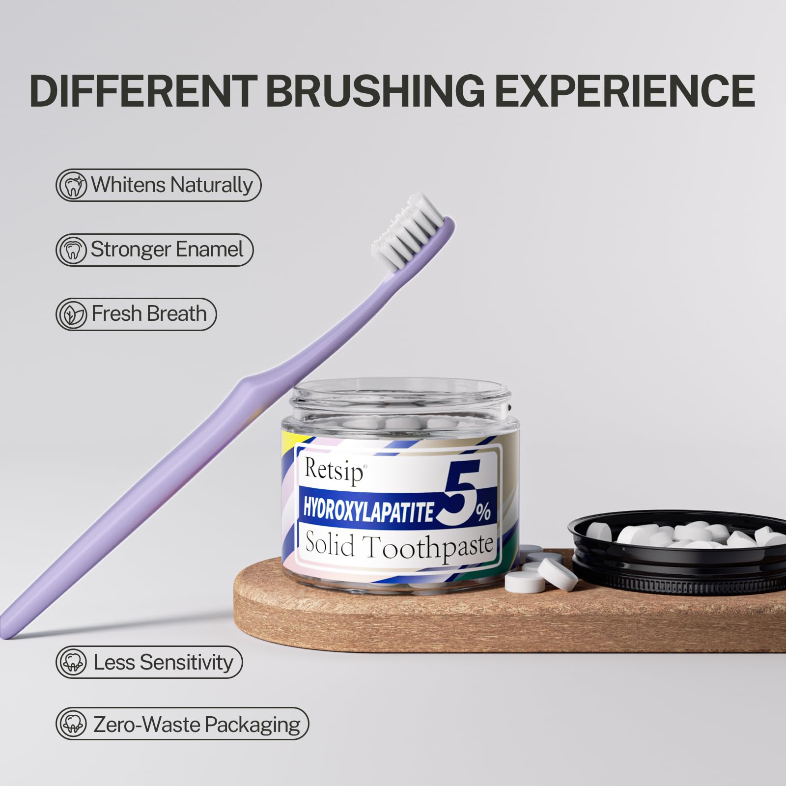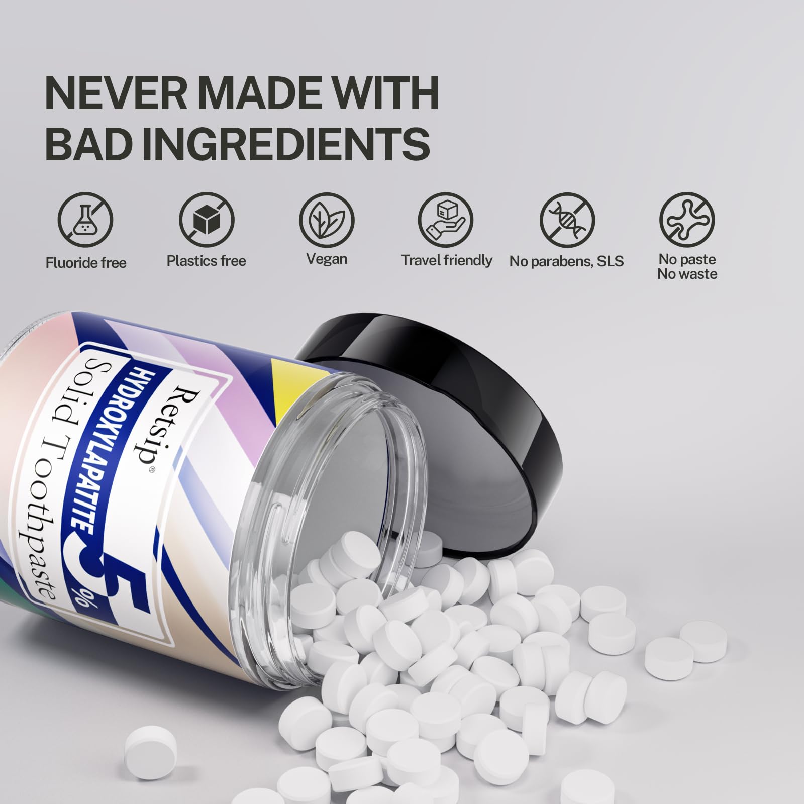 Retsip Toothpaste Tablets - 5% Nano Hydroxyapatite, Fluoride Free, Travel Friendly, Eco &Plastic Free, Remineralize & Whitening - 62pcs