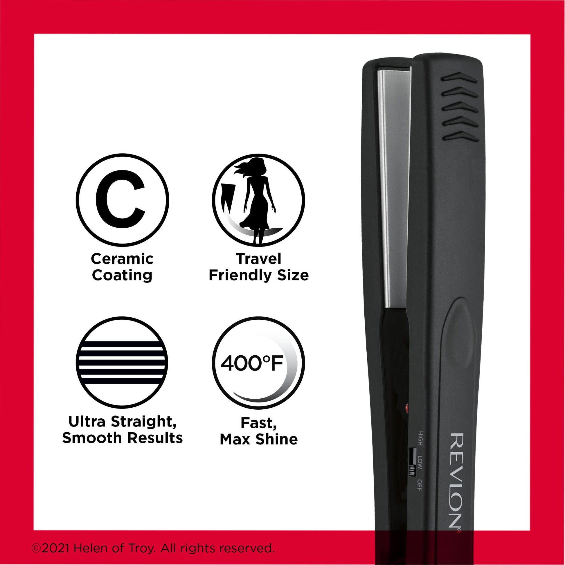Details: Revlon Hair Tools is dedicated to helping women achieve beautiful hair they'll love! Whether women desire gorgeous blowouts, big enviable waves, striking straight locks, or the perfect fashion accessory to complete the look, Revlon has the styling tools you desire. Our Essentials line provides you with your everyday essentials! ABOUT THE PRODUCT: Quick and Smooth Results with this easy-to-use flat iron designed for creating the latest hair trends in all hair types. Ceramic-coated plates help protect hair from over-styling with even heat distribution that penetrates and styles from the inside out for smooth, shiny results. The slim, 1 inch plates get close to the roots for ultra-straight and sleek, smooth looks. With 400ºF high heat for fast styling and with silicone finger grips make it comfortable and effortless.