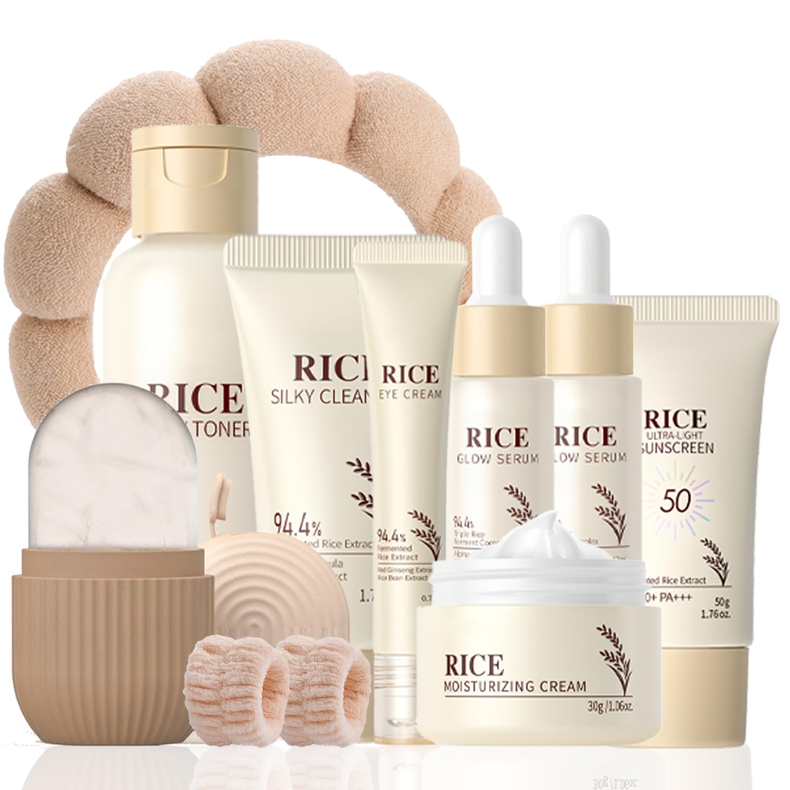 - 【RICE SKIN CARE ROUTINE KIT FOR WOMEN】: Achieve radiant and healthy skin with our all-in-one rice skincare set skin care for teens 10-12 for Teen Girl Gifts Birthday, designed to cleanse, nourish, moisturize and protect. This elaborately designed skincare set for teenagers includes facial cleanser, toner, sunscreen, facial essence (2 pieces), face cream, eye cream, hair band and facial ice roller. This rice skincare set is suitable for skincare set for girls 10-12 birthday gifts and includes all the daily care you need.