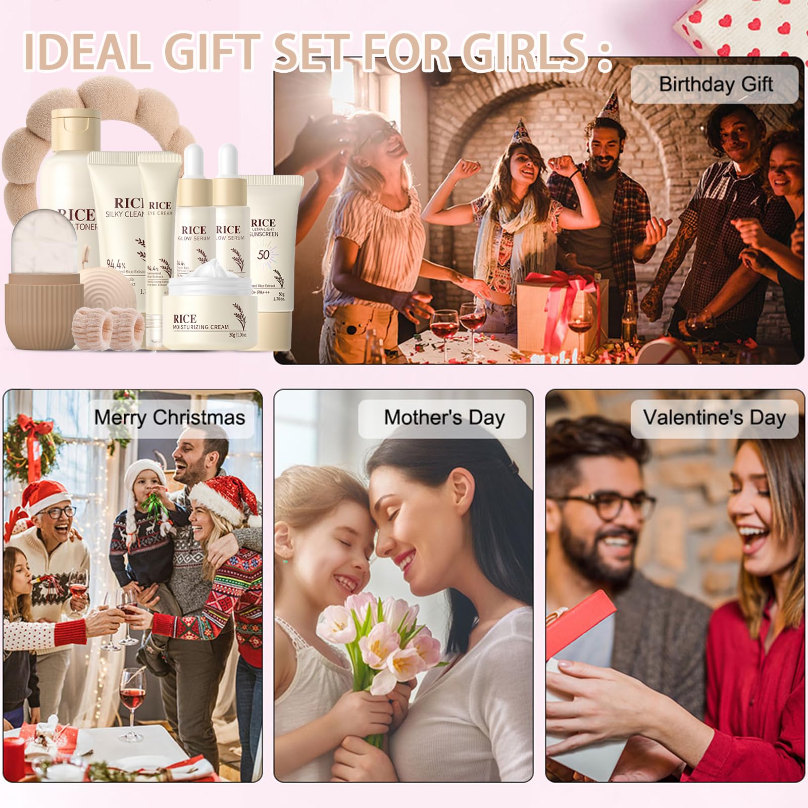 - 【GIFT SET FOR WOMEN】: The rice skin care set spring gifts for women is an ideal gifts set for Christmas, Valentine's Day, Mother's Day, easter basket essentials,give this beauty skincare kits gifts set skin care for teens to your mother, lover, daughter, sister to keep their skin clean and young. Imagine how happy they will be!