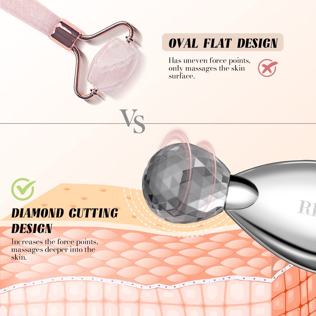 - ✿Our Crescent Line gua sha tool fits your skin's surface perfectly, thanks to its ergonomically designed curve. The diamond-cut roller head provides deeper skin massage than regular face rollers, effectively eliminating puffiness and dark circles.