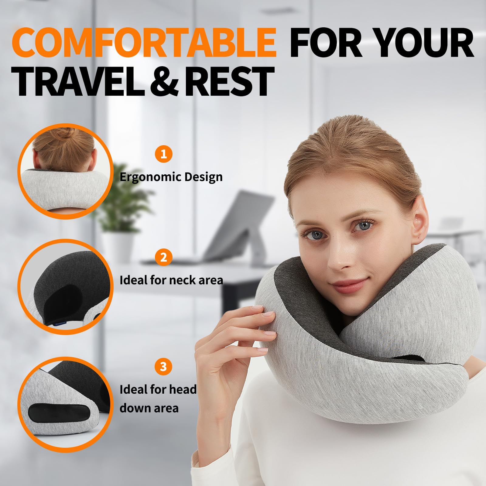 - Comfortable & Breathable: Our neck pillow for traveling is covered with breathable, sweat-resistant, and super-soft fabric to keep you cool and comfortable. Unlike regular U-shaped pillows, ours is machine-washable and fast-drying, so you can keep it fresh for every adventure. It's a best travel pillow and a great international travel essentials.