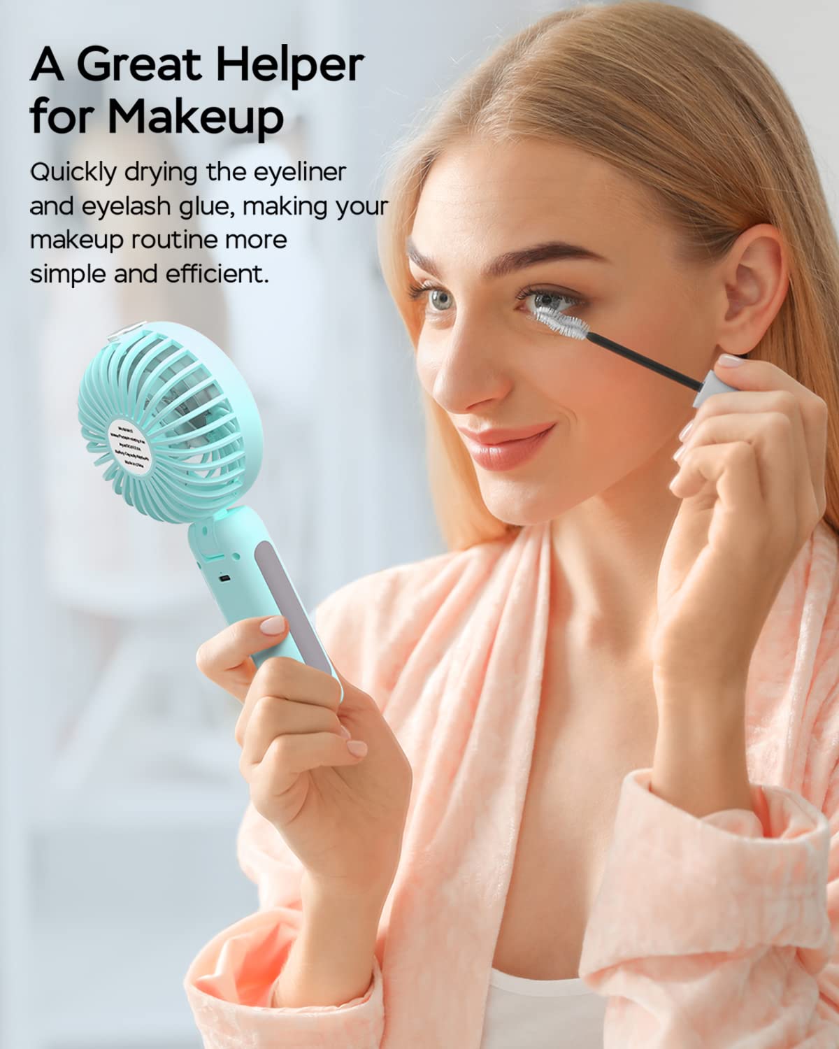 - 【Foldable and adjustable tilt】This mini fan is user-friendly, easy to operate, adjustable in angle and the handle conforms to the human body design, making it possible to meet your different needs and comfortable to hold for both large or small hands, you can use it outdoors as a handheld fan or desktop fan for your office or bedroom.
