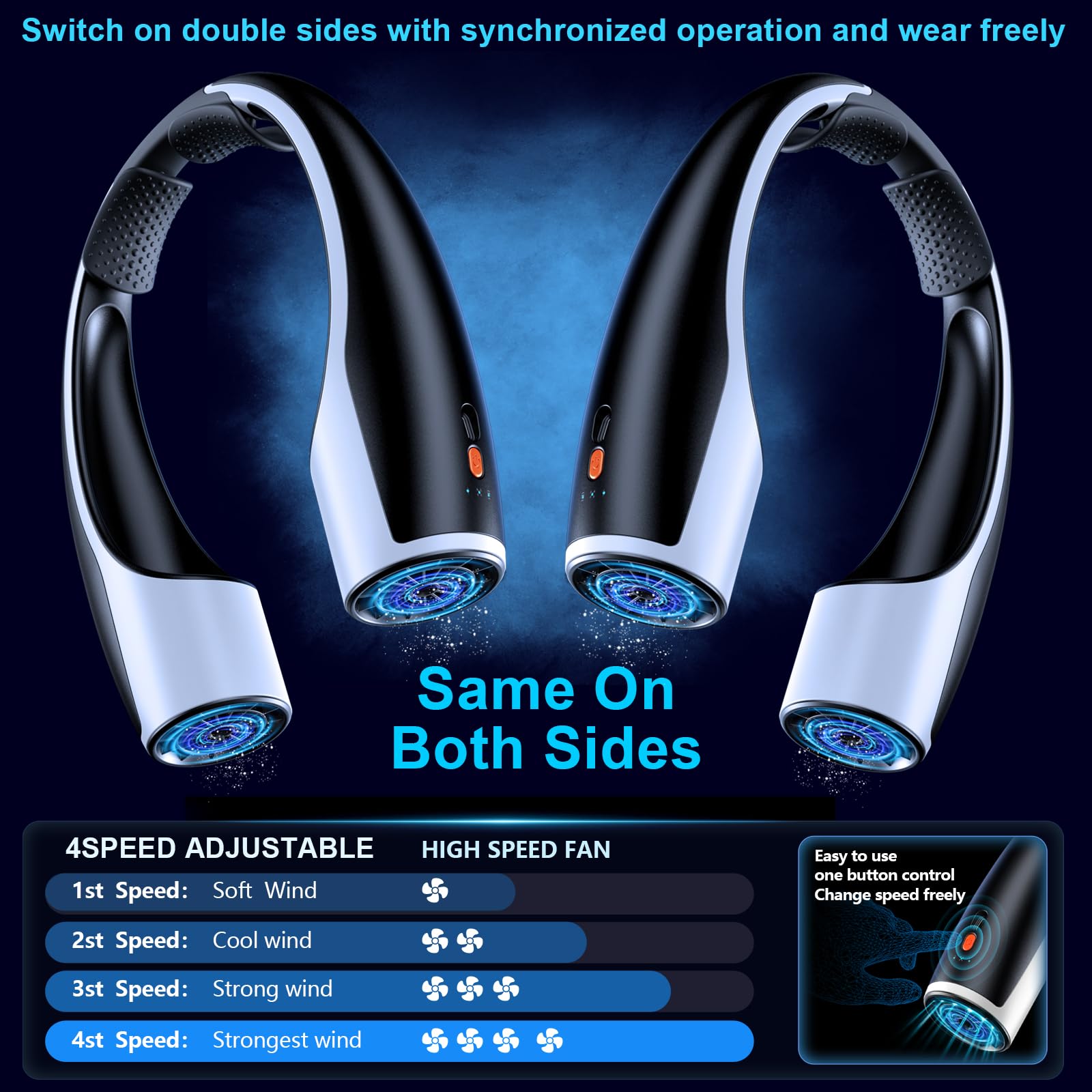 - 4 Adjustable Speed Settings – Customize your cooling experience with 4 speed levels, ranging from a gentle breeze to strong airflow. The Rohent Q1 adapts to your needs, whether you're relaxing indoors or battling high temperatures during outdoor adventures