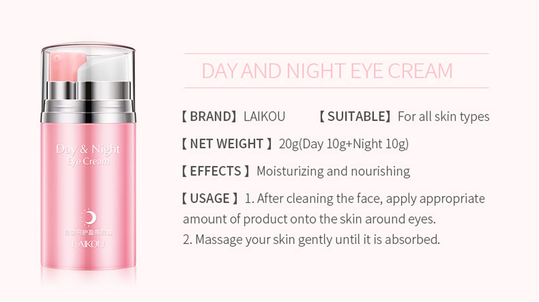 - Day and Night Eye Cream: Double tube pressing design to isolate pollution. Day and Night Eye Cream is convenient even for traveling. If you have any comments on our face moisturizer, please contact us and we will be at your service soon. Let us do the best for you and provide you a better looking!