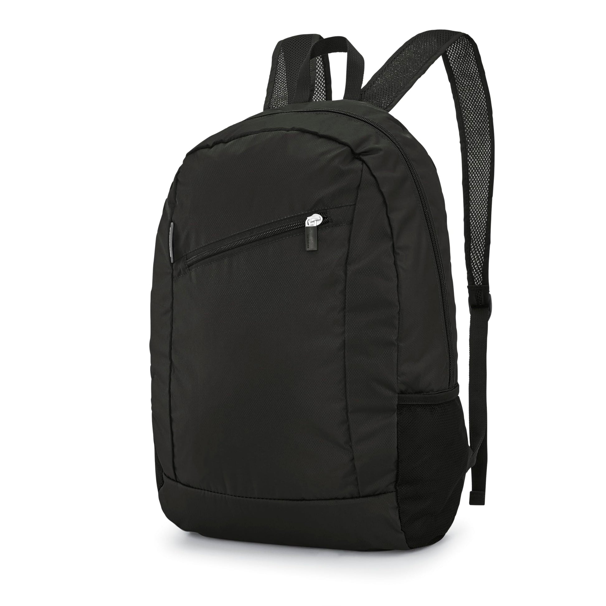 The idea solution for daily shopping, excursions, and beach trips, this foldaway backpack offers more space when you need it, and virtually disappears when you don’t. It easily folds into integrated compact pouch which serves as a convenient interior pocket when in use. Large main zippered opening easily stores all extra souvenirs acquired during travel. Adjustable shoulder straps are made of mesh for increased airflow.