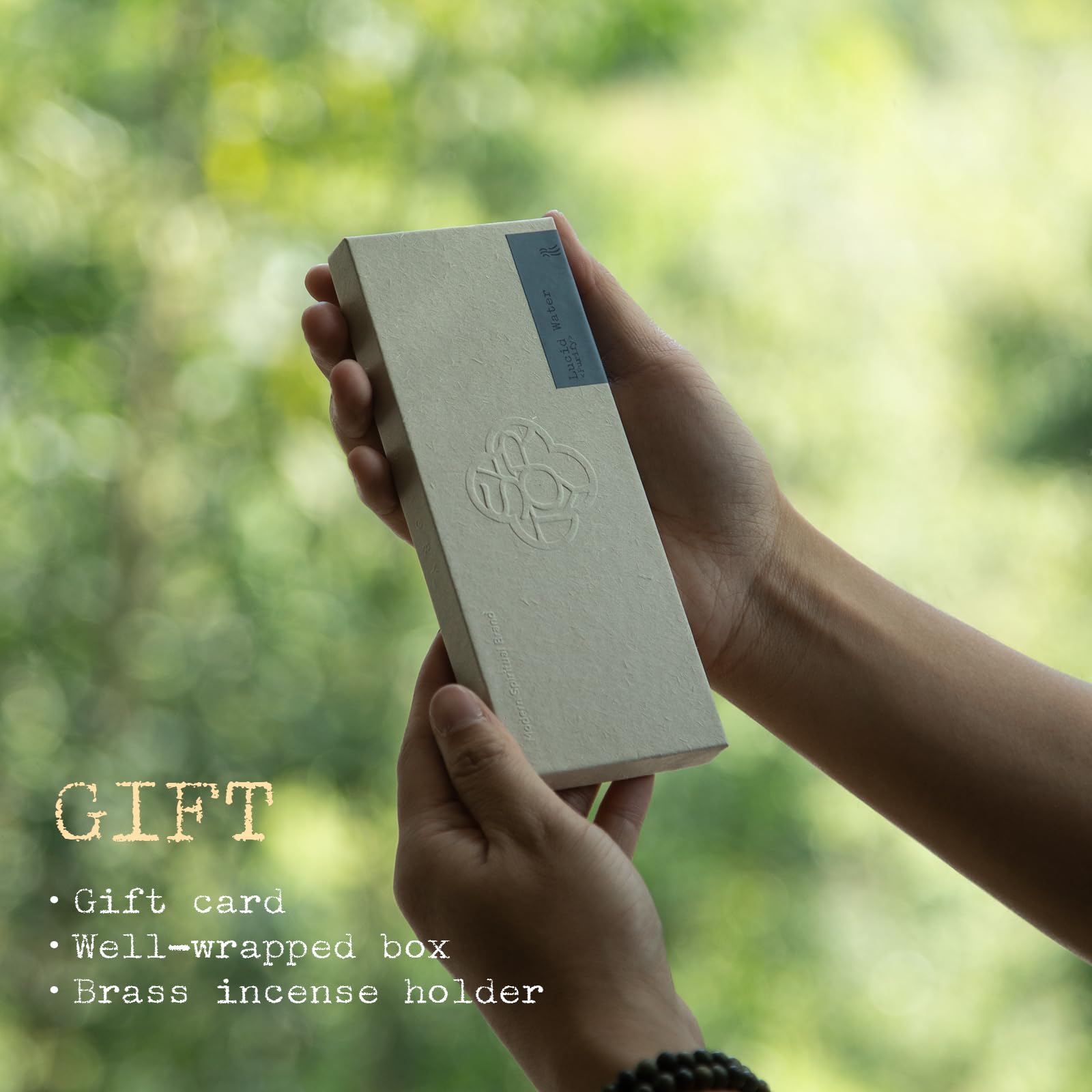- 【Specification】Includes ~70 organic sticks ( each 6.3" and burn for ~35 min) + brass incense holder. Subtle aroma— gentler than traditional incenses( Indian incense/ Japanese incense/ sage/ palo santo sticks)— lingers 1-2 hours (varies by room size)