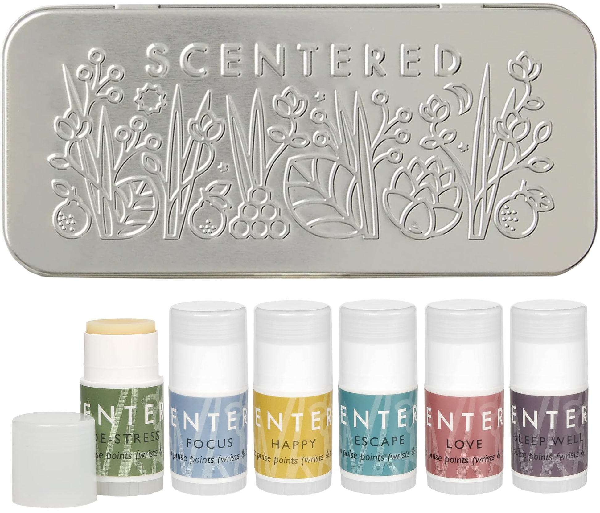 - Discover the Power of Aromatherapy – Try all of Scentered’s fragrances with six mini aromatherapy balms in a reusable gift tin. This relaxation pack features six expertly blended balms to boost mood and deliver an instant sensory reset. Use each balm as a convenient calm carry for your everyday routine wellness. Each balm is 1.5g / 0.05 oz.