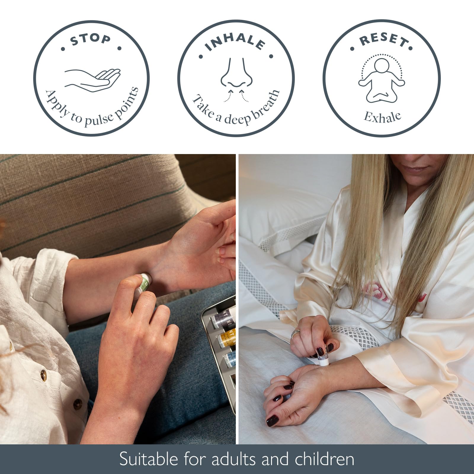 - Stop. Inhale. Reset: Easy & Mess-Free – Apply the balms directly to pulse points for therapeutic support throughout the day. With a non-greasy formula, they’re mess-free and simple to use anytime, anywhere - even inside face masks. Suitable for both adults and children. A portable aromatherapy inhale blend set for your daily routine.