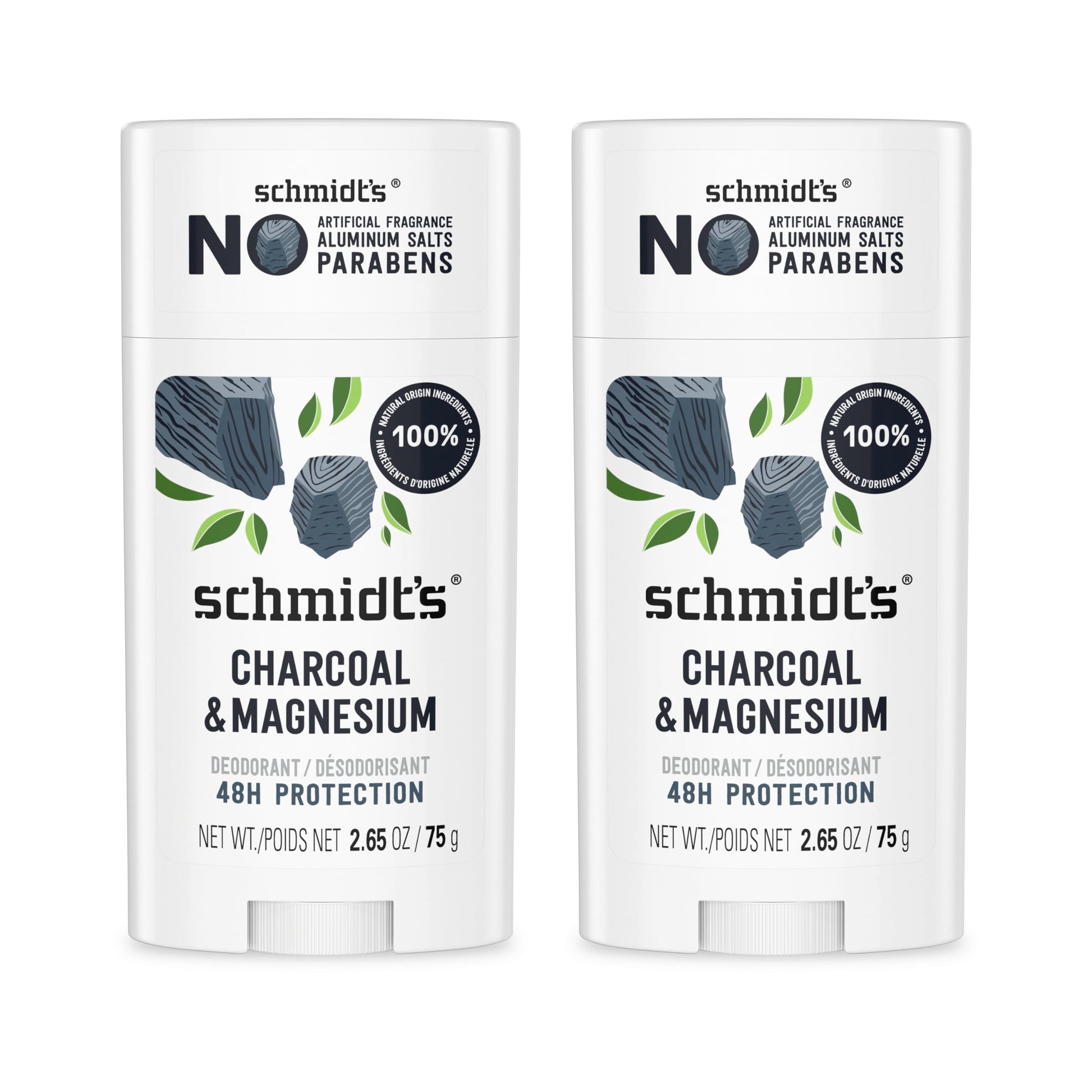 Schmidt's Aluminum-Free Vegan Deodorant Charcoal & Magnesium with 48 Hour Odor Protection, 2 Count for Women and Men, Natural Ingredients, Cruelty-Free, 2.65 oz, Pack of 2