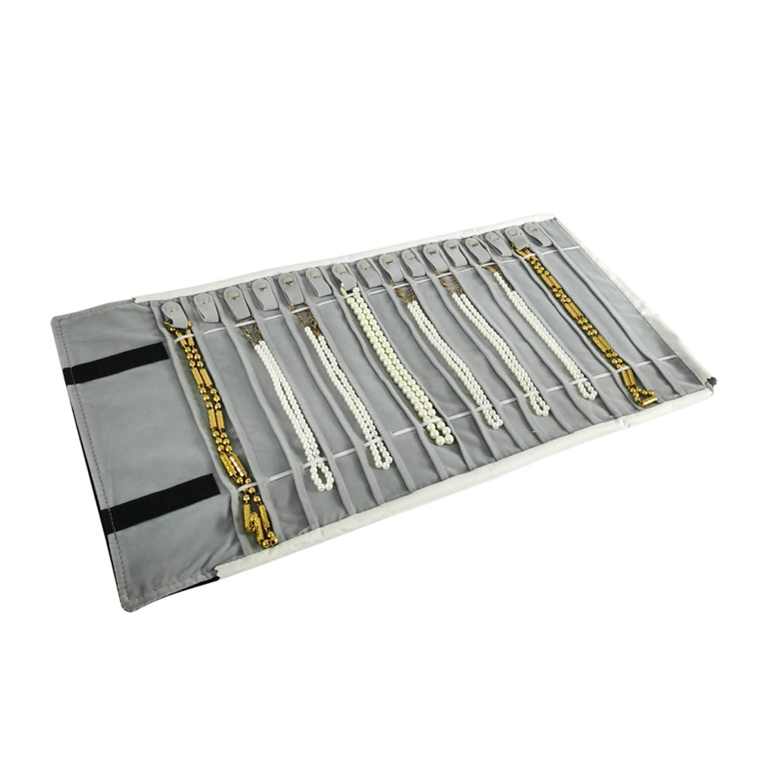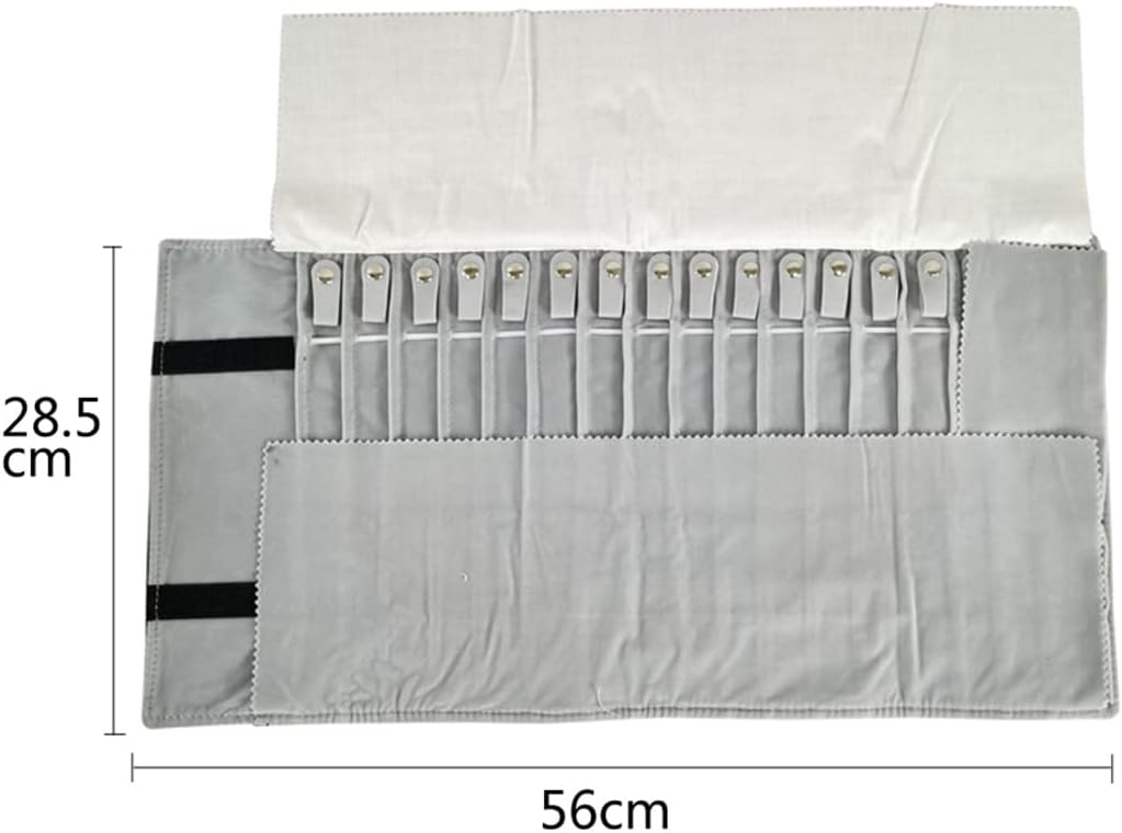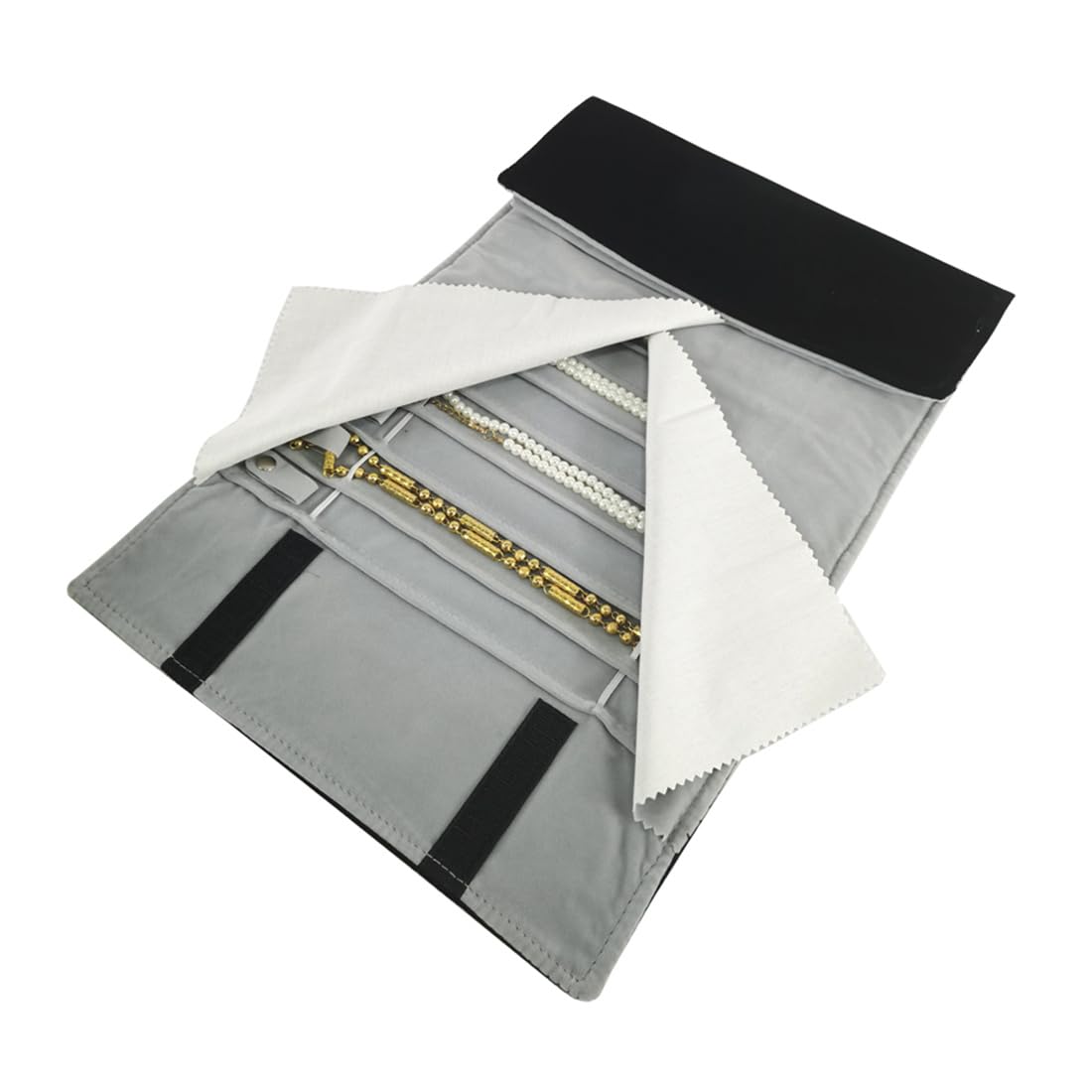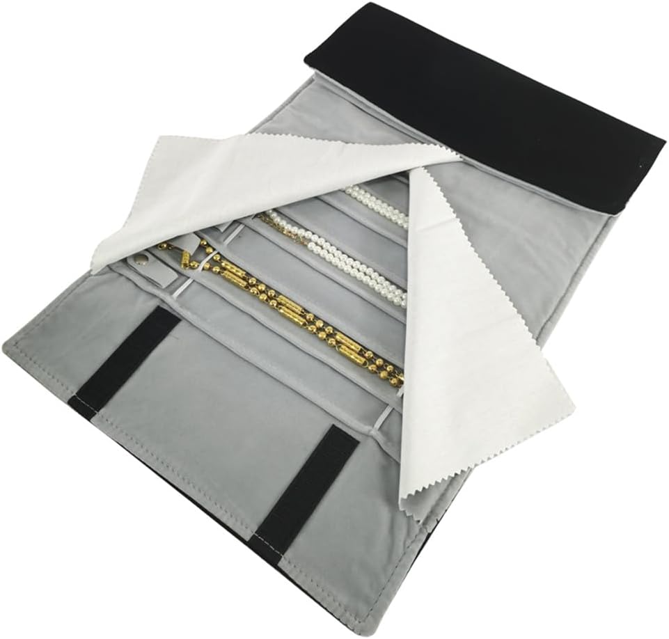 SCIKHEFT Portable Jewelry Roll Untangled Secure Necklace Travel Storage Bag Displays Holder 16 Chain (Black and Gray)