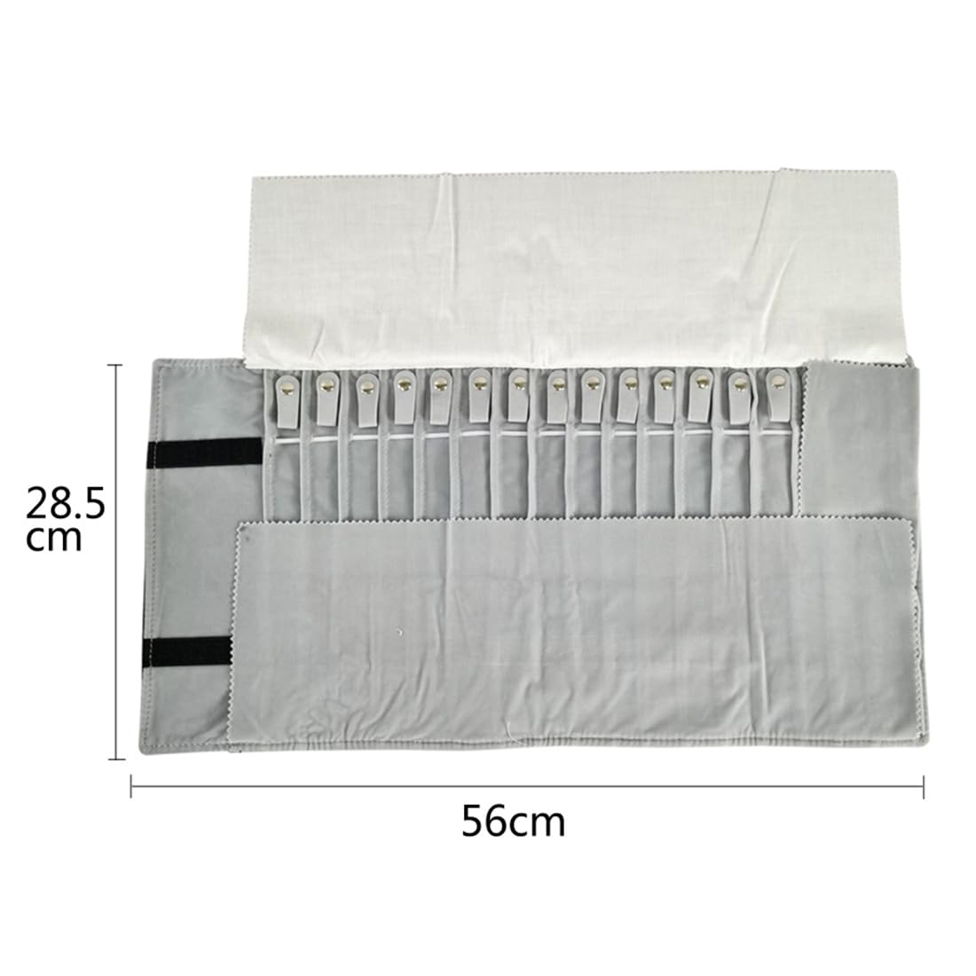 Details: 1. Chinese Patent product, we owe the intellectual property right. 2 elastic bands to keep your chain and necklace in position 3. The devider make every chain separately displayed and never mess up. 4. Light weight, portable and stackable 5. Premium quality jewelry combination roll, big storage but small size and very compact ,convenient to carry it 6. Made of high quality soft velvet which is good at protecting your jewelries 7. Including 16 necklace/bracelet holder with antirust button design 8. Keep your necklaces jewelry separately sit in this elegant roll while you travel 9. Measured 55x29cm when unfolded and 29x14cm when folded In summary, our Chinese patent product, the jewelry combination roll, is a lightweight, portable, and compact solution for organizing and protecting your jewelry. It features elastic bands, a divider, and high-quality soft velvet to keep your necklaces and chains secure and tangle-free. With 16 necklace/bracelet holders and travel-friendly dimensions, it's the perfect choice for anyone who wants to keep their jewelry organized and protected.