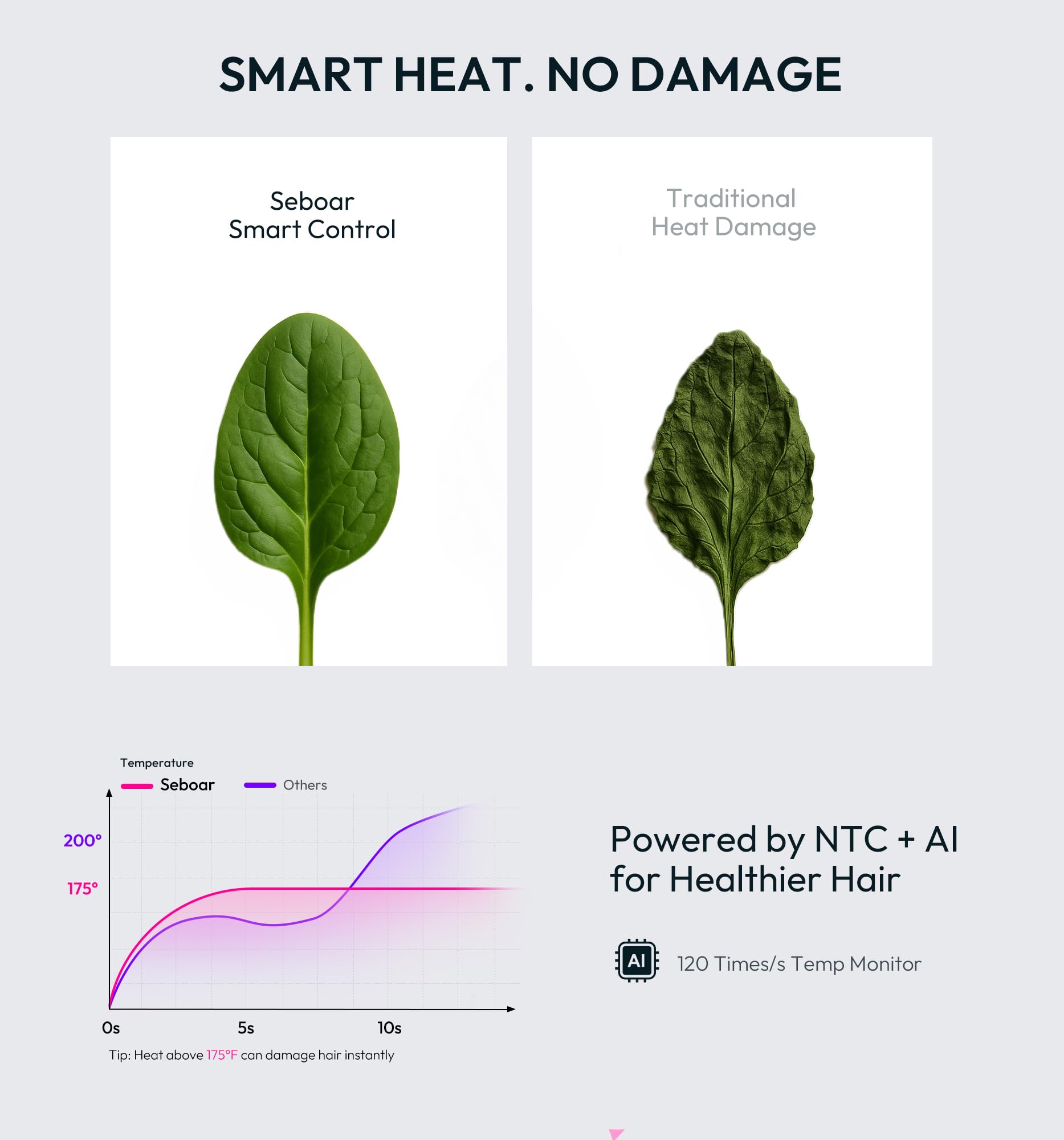 - Smart Heat Control & Memory Function: AI sensors monitor heat 120 times/s to prevent damage, ideal for fine or sensitive hair. The Last-Used Preference remembers your settings for faster, smarter styling every time