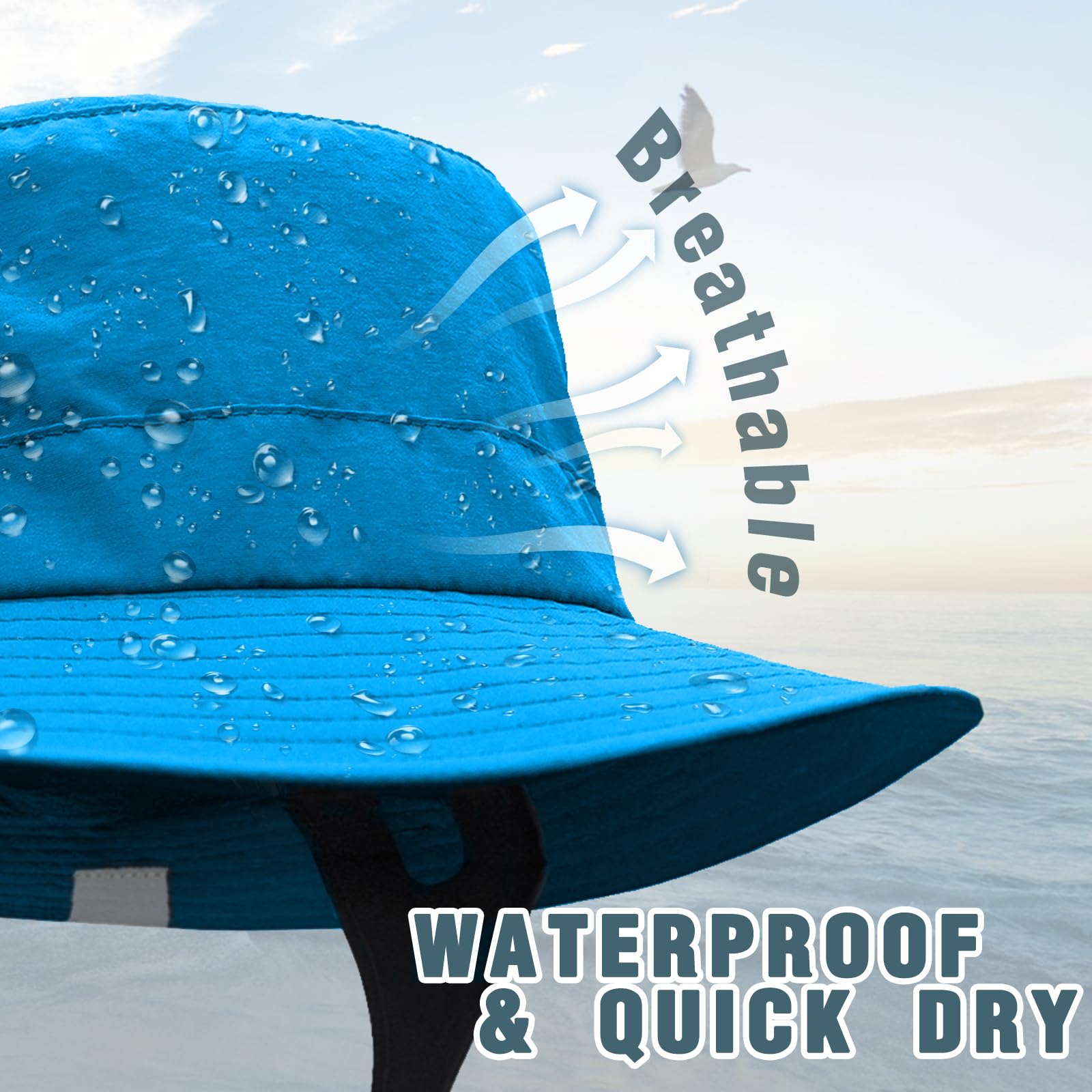 Seektop Surf Bucket Hat with UPF 50+ UV Protection, Waterproof Sun Hat with Adjustable Chin Strap for Surfing, Water Sports Blue