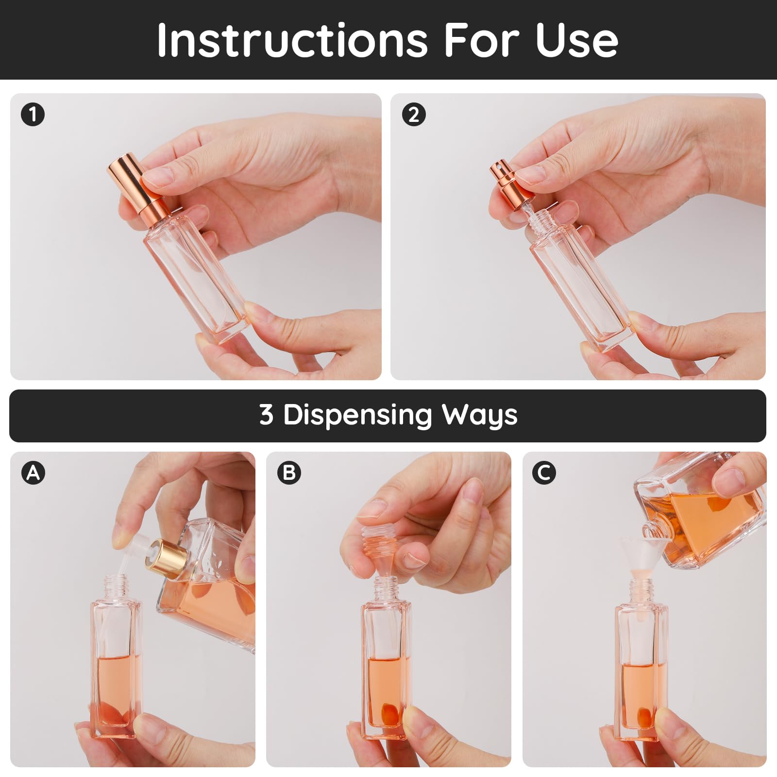 - 【Easy to Refill & Use】 Comes with 1*FUNNEL+1*DROPPER+1*PUMP, make it easy to refill the perfume bottles with your preferred fragrance. Press pump head design, allowing you to keep your mini perfume atomizer ready for use at all times.