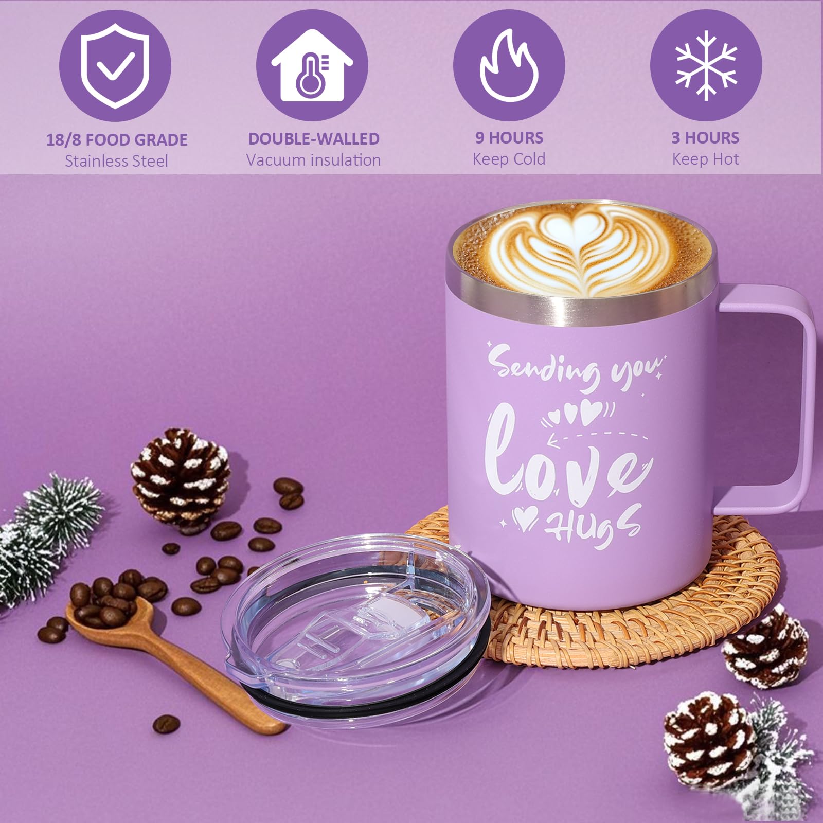 - A WARM MESSAGE IN EVERY SIP: This 12oz insulated tumbler is more than a cup — it's comfort in a handle. Double-walled to keep drinks cold up to 9 hours or hot for 3, it features a heartfelt “Sending You Love and Hug” message. A thoughtful sending hug gift, perfect as a thank you gift, support gift, or inspirational gift for tea and coffee lovers. When she wraps her hands around it, she’ll feel the warmth of your care