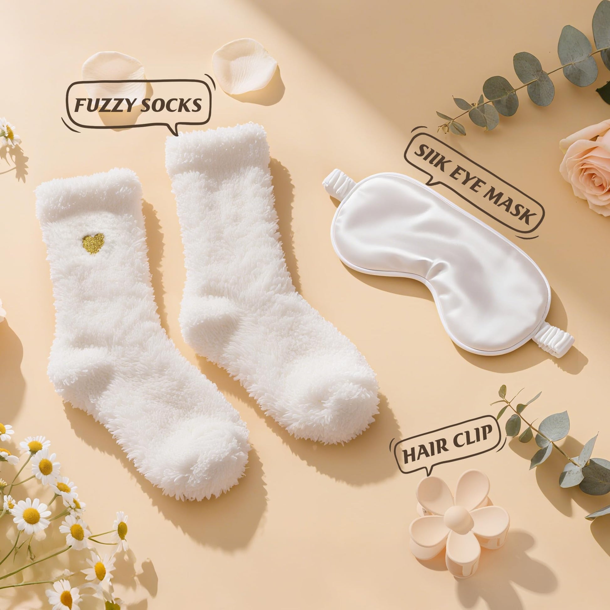 - đăCozy Comfort Gift Set for HerăThis curated set includes a plush sleep eye mask, ultra-soft socks, and stylish hair clips designed for both practicality and beauty. The hair clips offer a touch of elegance while keeping hair comfortably in place, helping her maintain confidence and grace during recovery or celebration. Together, these items create the ultimate comfort experienceâperfect for relaxing at home, recovering after surgery, or enjoying everyday self-care.