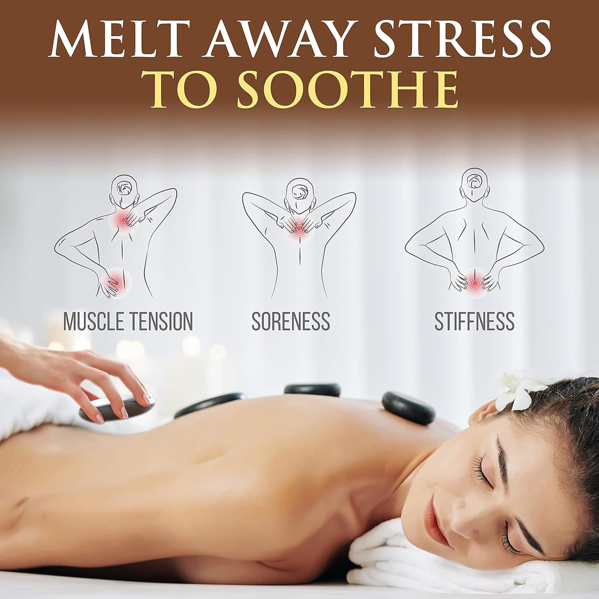 - THERAPEUTIC RELIEF: The basalt massage stones spa rocks massager relieves pain caused by sprains and strains, melt away stress to soothe muscle tension, soreness, and stiffness and it is also ideal for athletes, home care and therapeutic spa centers
