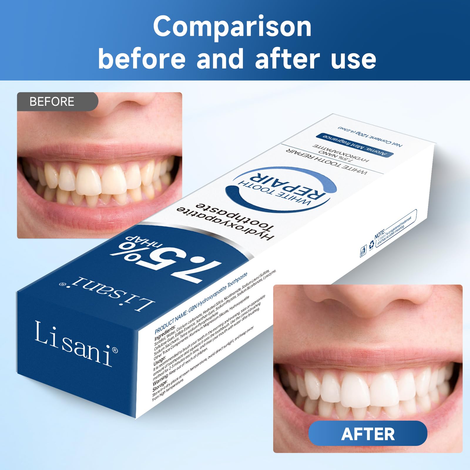 - 【Whitens Teeth Safely】Gently removes surface stains while polishing teeth with nHAp particles, restoring natural whiteness over time. No peroxide or abrasive agents are perfect for daily use without damaging enamel.