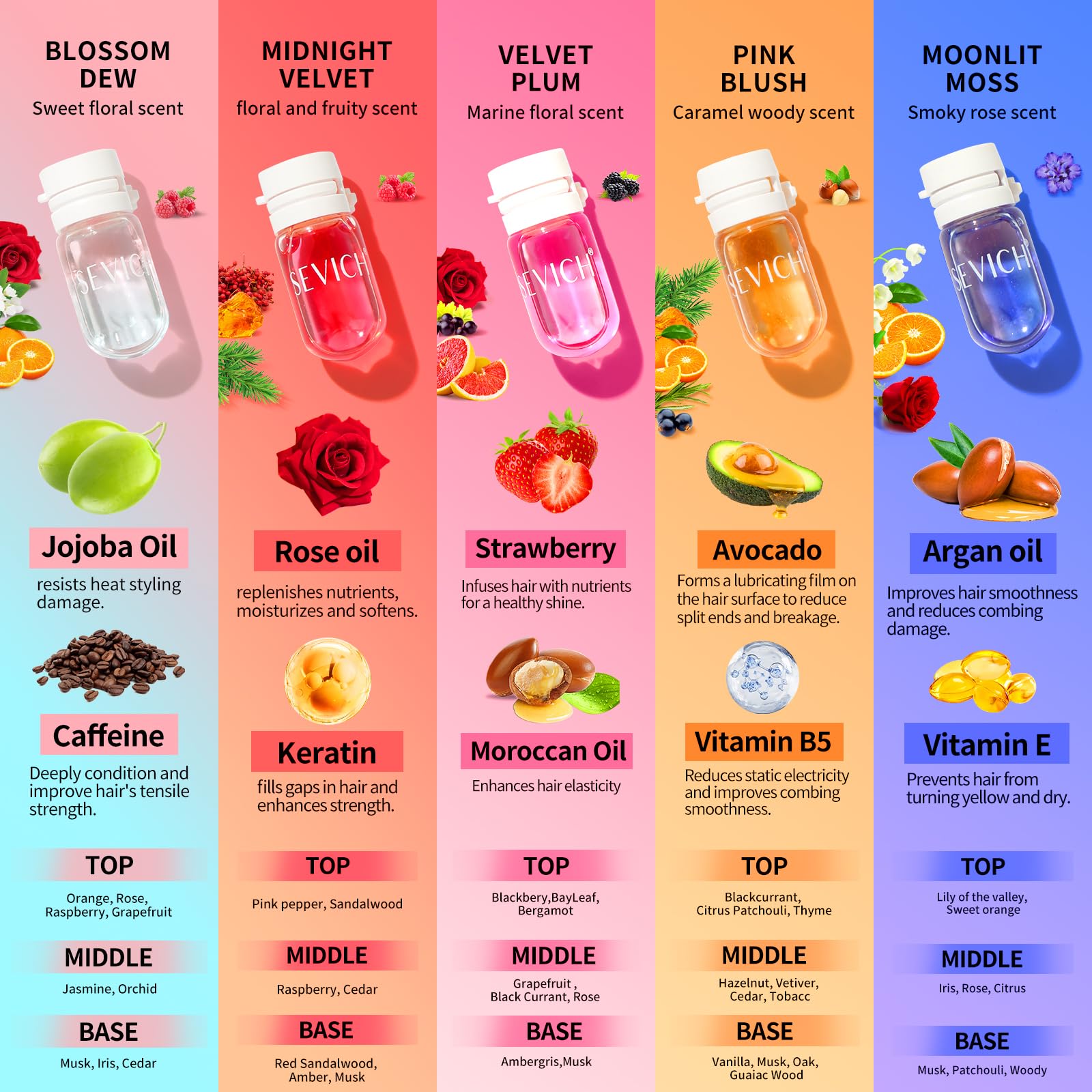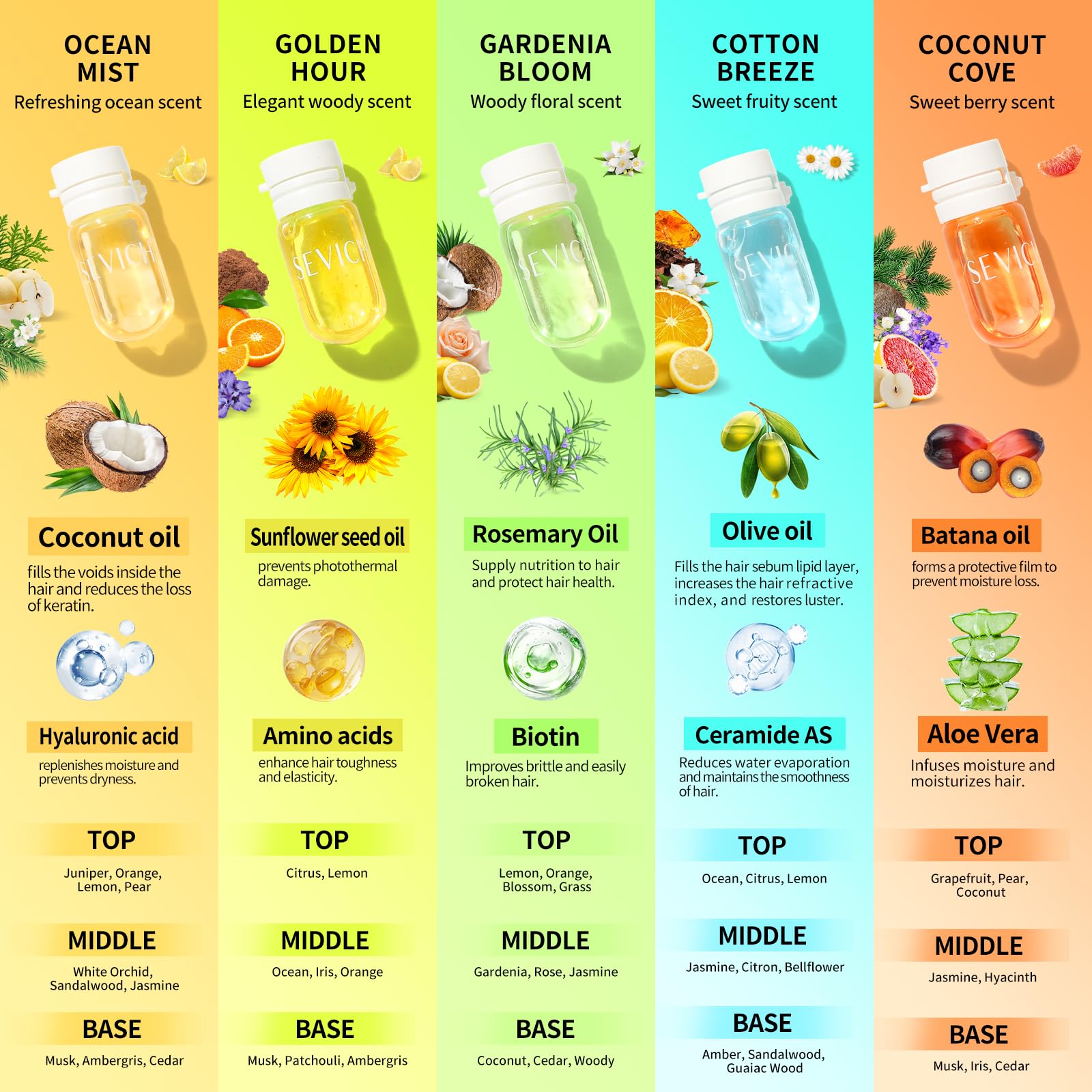 SEVICH Perfume Hair Oil Capsules 15-Pack, 2-in-1 Hair Treatment & Lightweight Serum, Heat & UV Protection, Frizz Control & Shine, Portable Travel Hair Care for All Hair Types