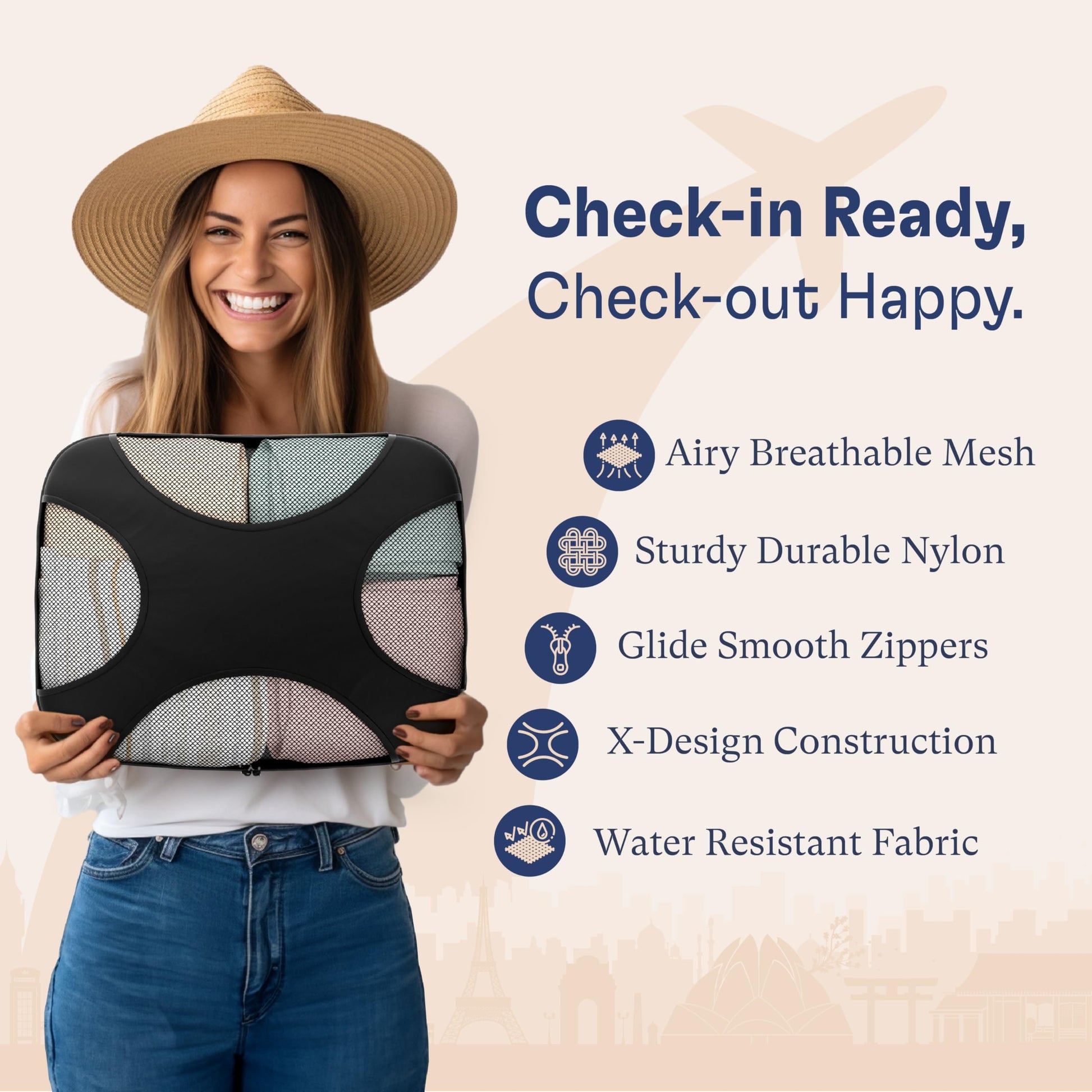 Shacke Premium 5 Packing Cubes Set - Lightweight Mesh Travel Luggage Organizers with Laundry Bag, 5-Piece Suitcase Storage System (Black)