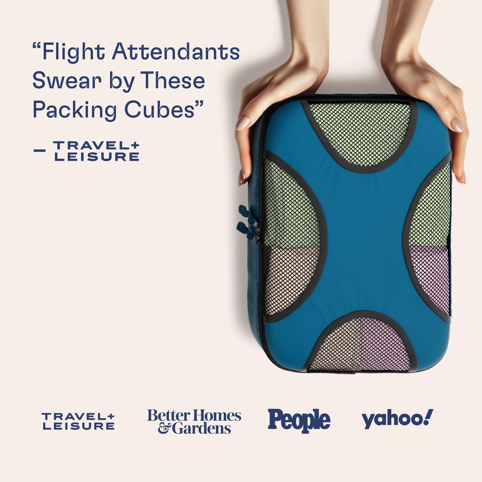 Shacke Premium 5 Packing Cubes Set - Lightweight Mesh Travel Luggage Organizers with Laundry Bag, 5-Piece Suitcase Storage System (Gentlemen's Blue)