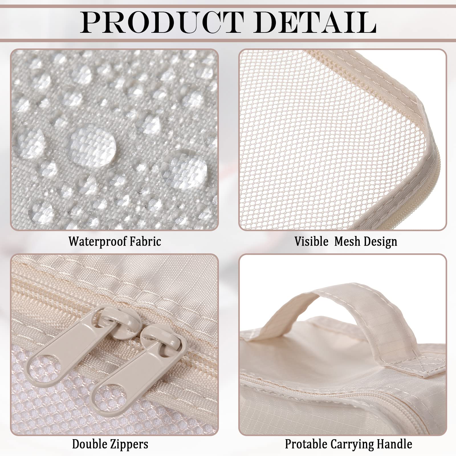 - Size: large: 16.5 x 12.5 x 4.7 inches; Medium: 13.8 x 8.7 x 3 inches; Small: 8.7 x 6.7 x 3.2 inches; Shoe Bag: 12.5 x 7.9 x 4.7 inches, large interior volume holds all your travel accessories like shirts, jackets, jeans, pants, underwear, shoes, makeups and more