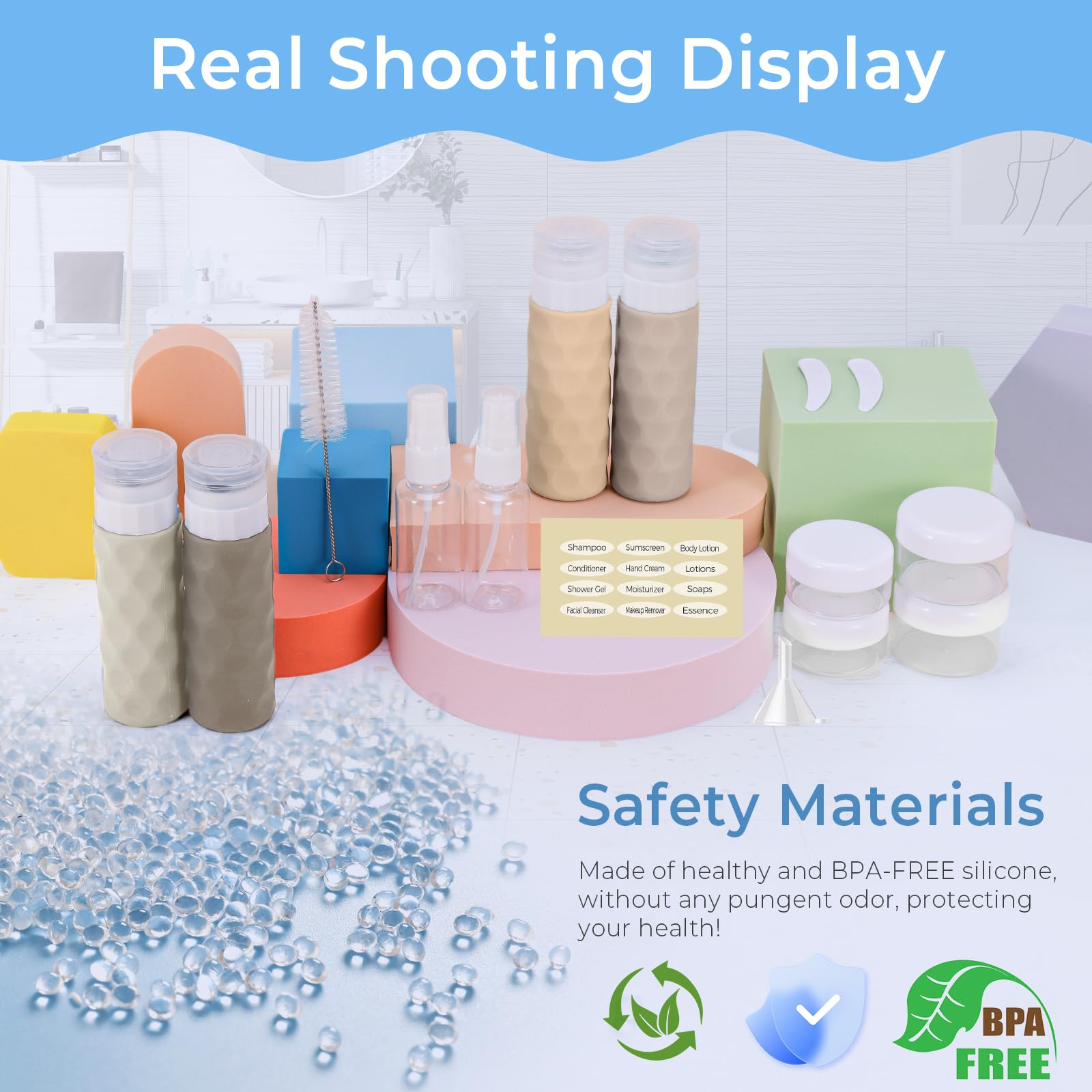 - 【FOOD GRADE BPA FREE SILICONE】Silevoler 16pack Travel Bottles for Toiletries include 4 travel silicone travel bottles made from BPA-free premium silicone, meaning your items won't be contaminated by any toxins. Use your daily personal care items anywhere