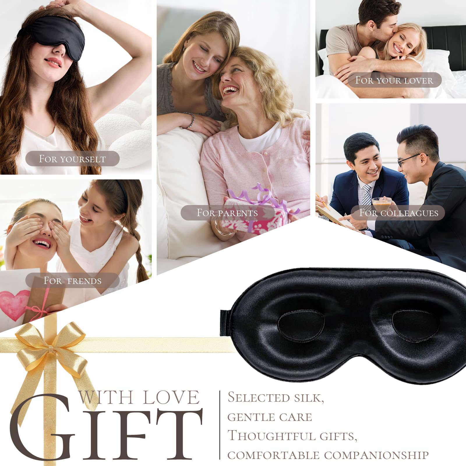 Silk Sleep Mask for Smaller Heads Women,100% Mulberry Silk Eye Mask with Sleep earplugs and Intelligence-Adjust Strap - 3D Contoured Sleeping Mask, Blackout Blindfold Travel noon Break Essentials