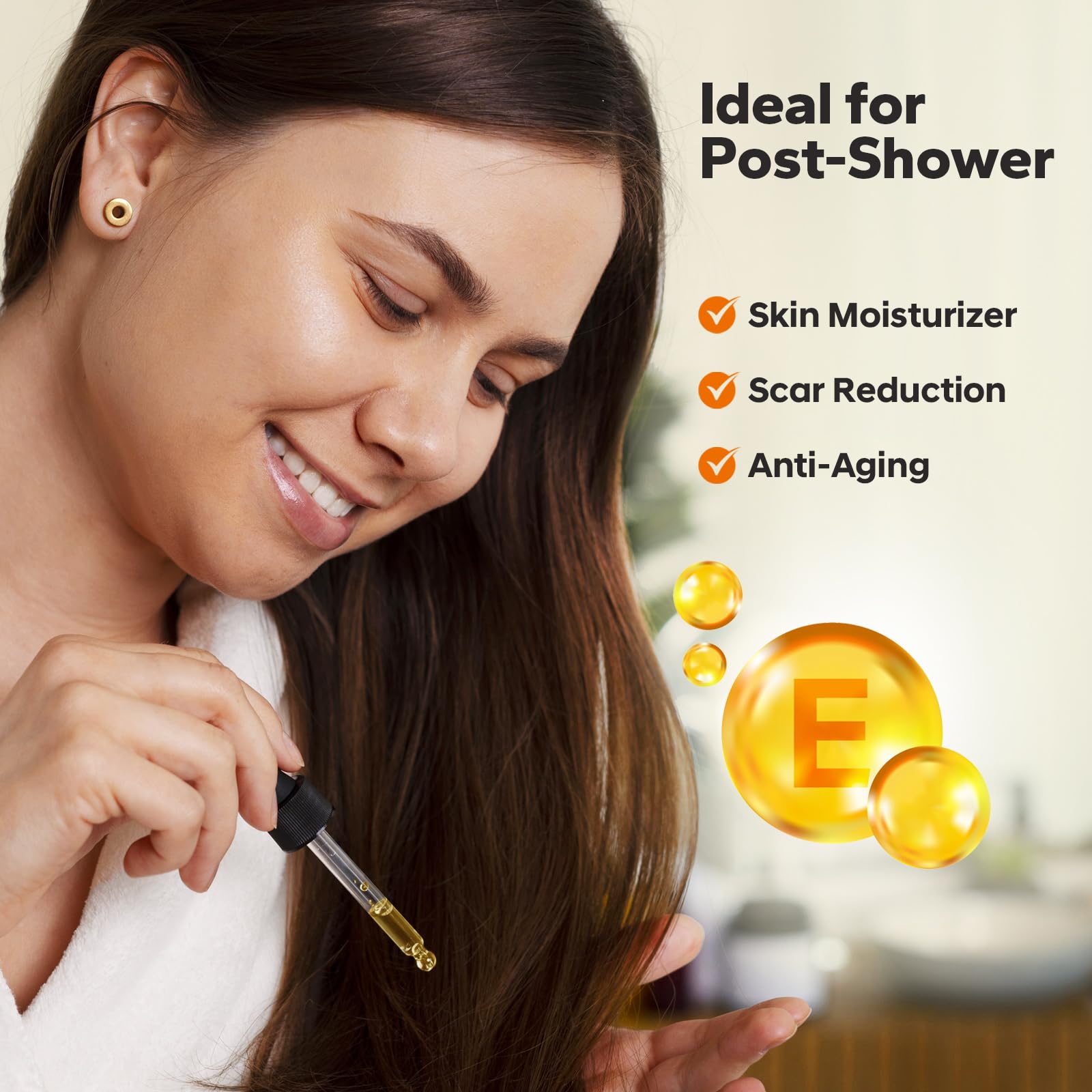 - Ideal for Bath & Post-Shower: SilkySecret Vitamin E Oil is the perfect choice for bath and post-shower care. It quickly penetrates the skin, locking in moisture and keeping the skin soft and hydrated. Whether for daily care or special occasions, it’s an excellent way to keep your skin smooth and supple.