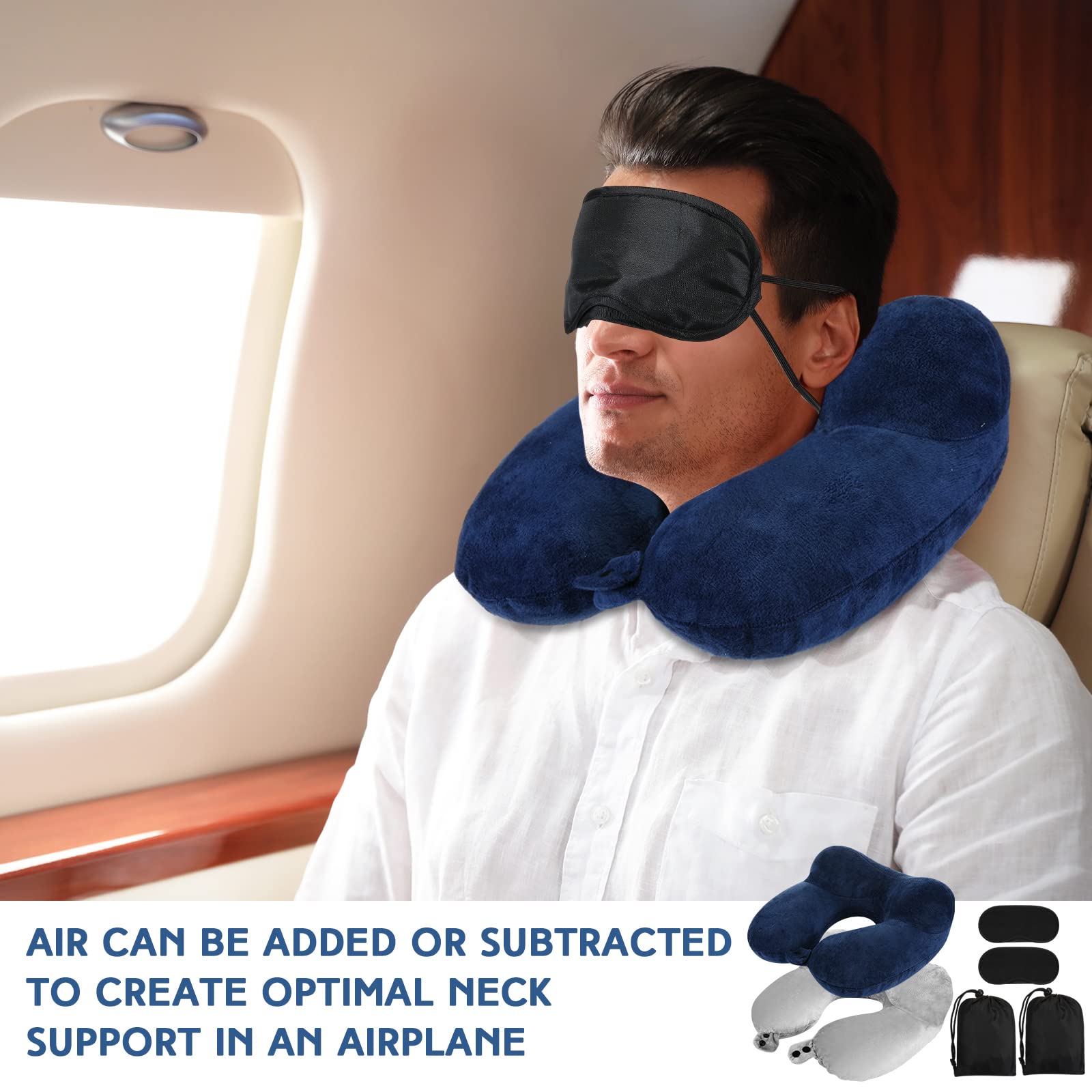Sintuff 2 Pack Inflatable Travel Pillow for Airplanes Inflatable Neck Flight Pillows with Compact Bag and Blindfold for Traveling, Airplane, Train, Car, Office(Gray and Blue)