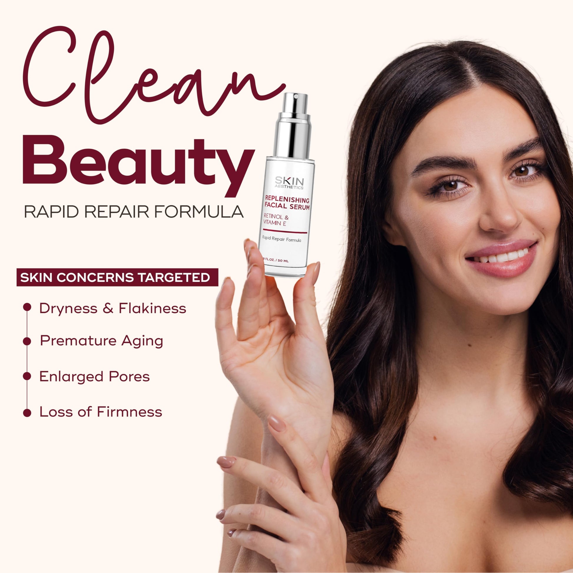 Skin Aesthetics Retinol & Vitamin E Face Serum - Anti-Aging, Blemishes, Fine Lines & Wrinkles Treatment - Dermatologist Tested Korean Skincare - Clean Beauty, Cruelty-Free - 1.69 oz