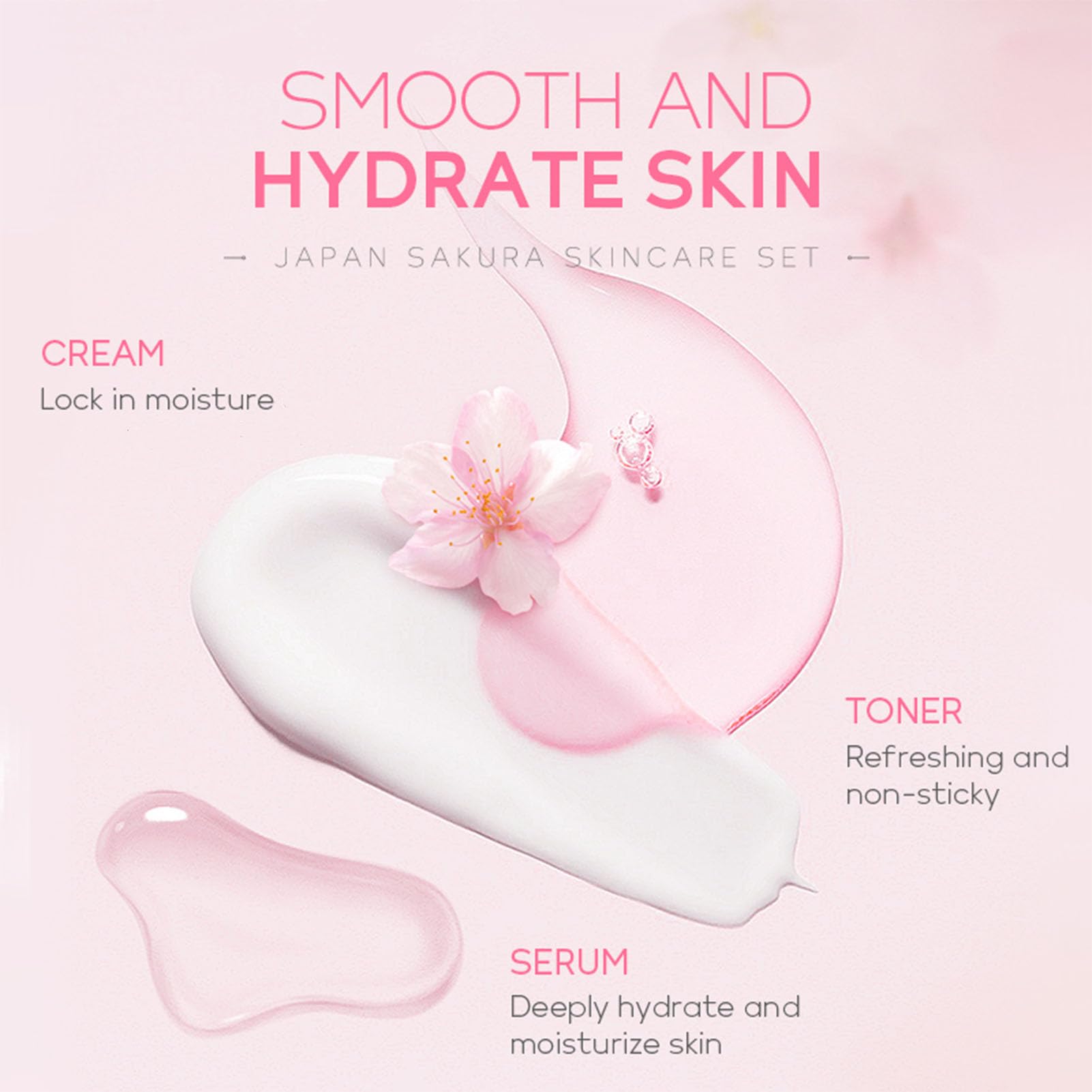 - 【 Enriched with Sakura Extract 】 Cherry ingredients blossoms are rich in vitamins A, B, and E, which can shrink pores, control oil, and are suitable for facial skin care. Sakura oil contains sakura enzymes, which have antioxidant effects, maintain skin elasticity and long-lasting moisturizing skincare and hydration.