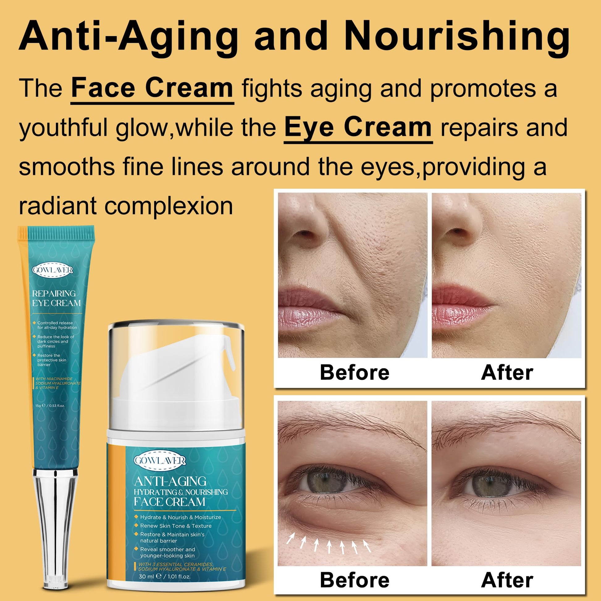 - Moisturize and Nourishing: Our water-based Face Cream and Eye Cream hydrate, nourish, and rejuvenate skin. The water-based moisturizer for face fights aging and promotes a youthful glow, while the eye cream targets Puffiness & Dark Circles, repairs and smooths fine lines around the eyes, providing a radiant complexion