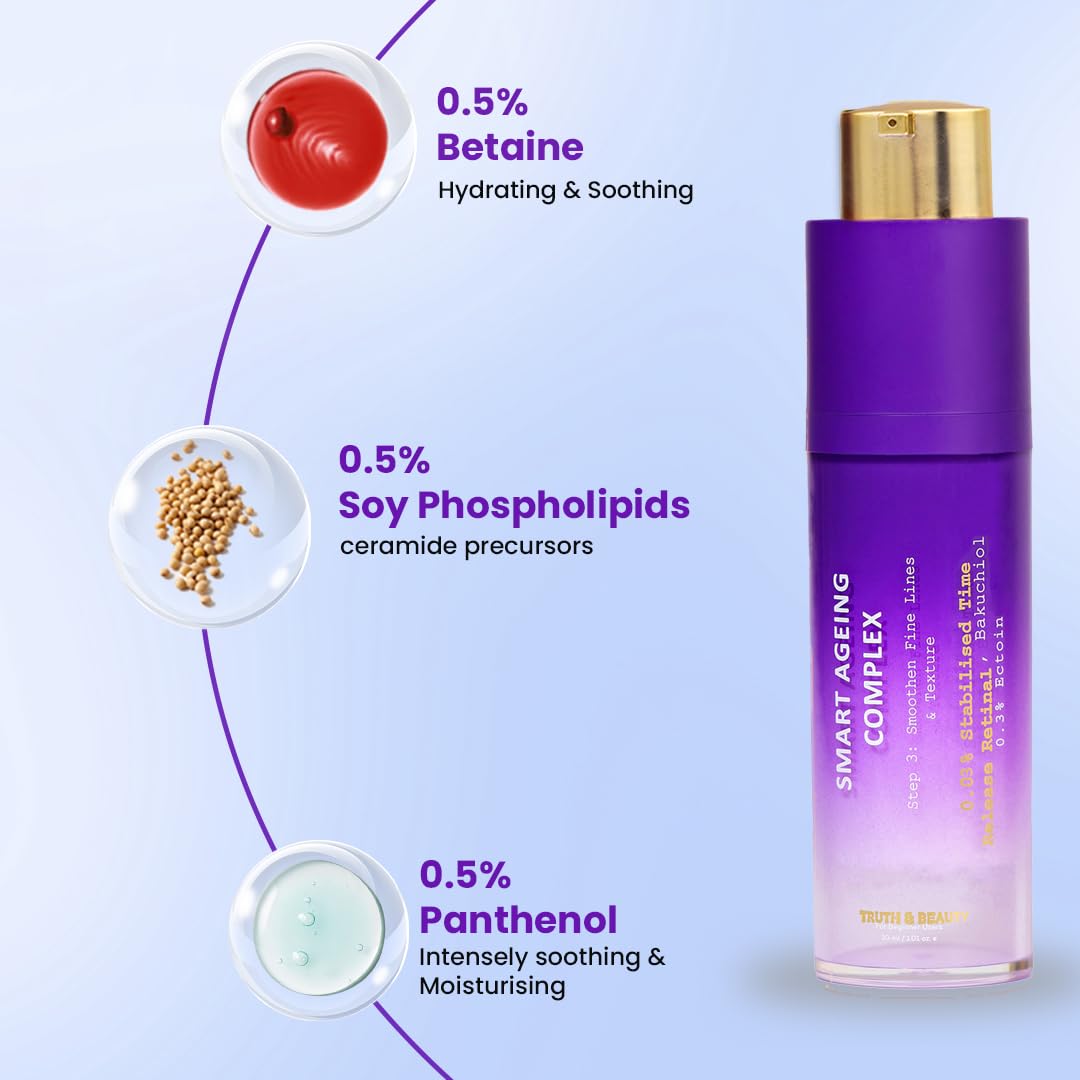 - TRUTH & BEAUTY MULTI-TARGETED SKINCARE SET: This trio delivers comprehensive care, hydrating and soothing the skin while it may help create a more even, soft, and supple skin. The C Radiance Serum supports a clearer looking skin with potent vitamin C, while the smart ageing complex enhances elasticity, smooths, and supports a radiant complexion.