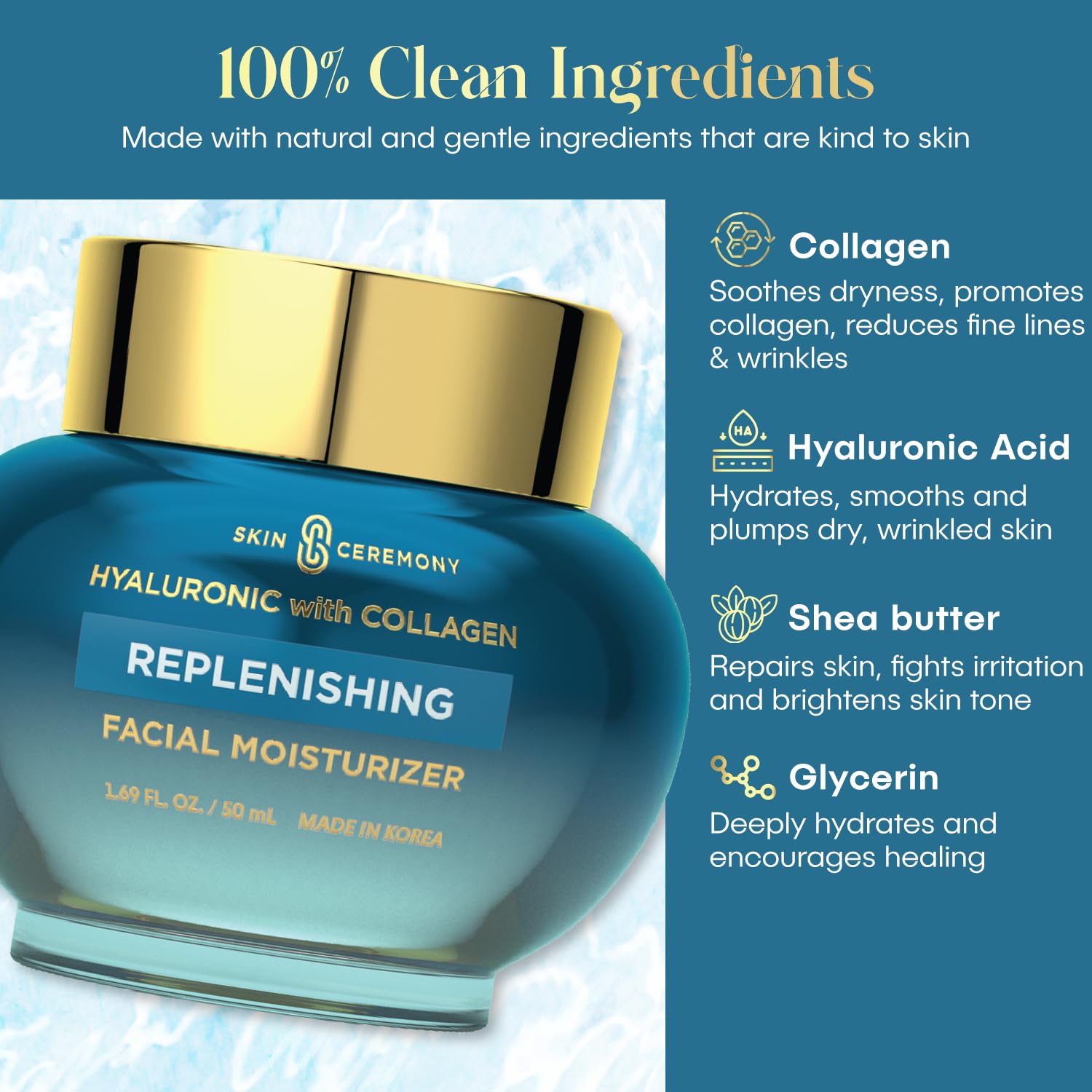 Skin Ceremony Hyaluronic Acid & Collagen Replenishing Moisturizer - Deep Hydration & Moisture Retention, Anti-Aging - Dermatologist Tested, Clean Beauty, Korean Skin Care - 1.69 FL.OZ. (2 Pack)