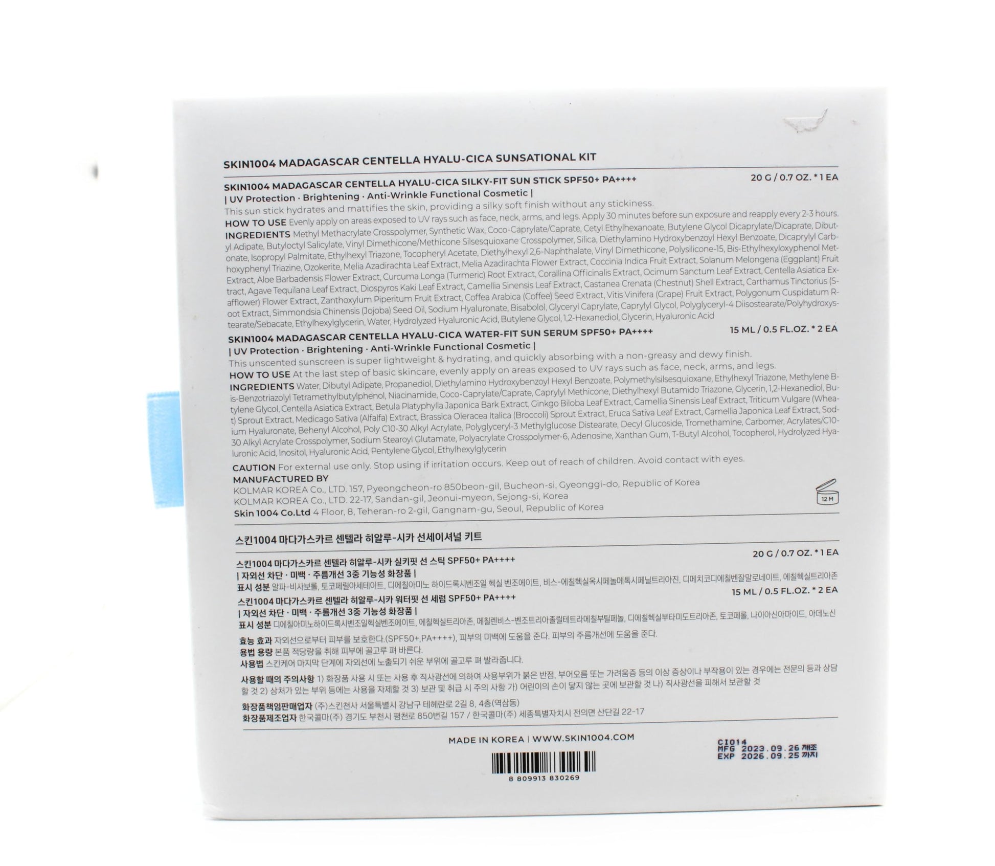 SKIN1004 SKIN 1004 - Hyalu Cica Sunsational Kit. Madagascar Centella Hyalu-Cica Silky-Fit Sun Stick X1 and Madagascar Centella Hyalu-Cica Water-Fit Sun Serum Mini X2 korean gift set