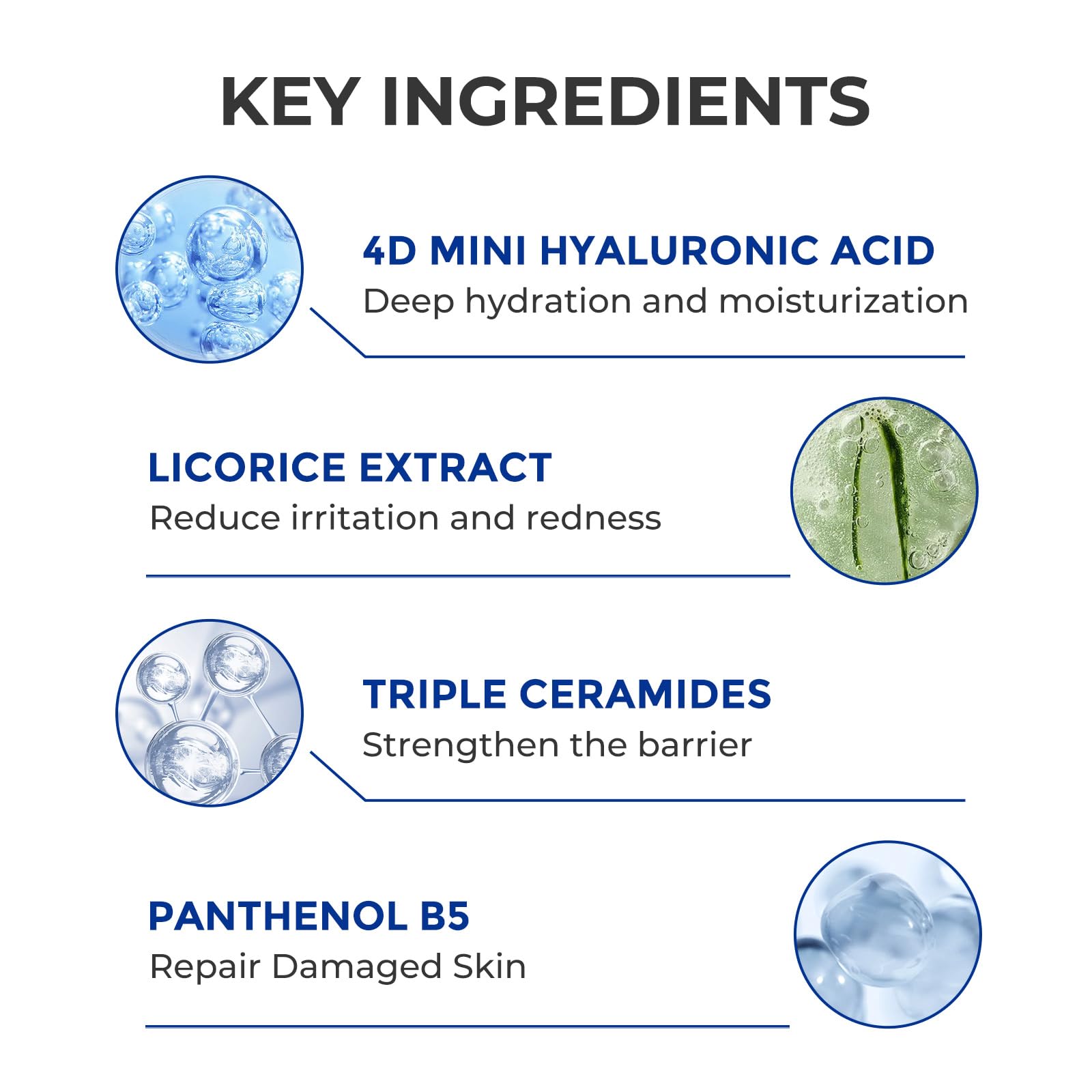 - [ CALMS & SOOTHES SKIN ] This moisturizer infused with Licorice Extract to reduce redness, Ceramides to repair the skin barrier, and Vitamin B5 to support resilience, helping maintain balanced, comfortable skin.