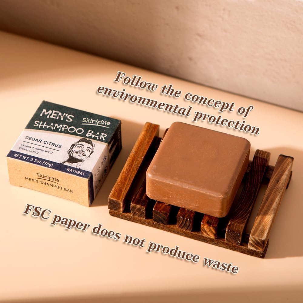 SKIRIFINE Shampoo Bar for Men - Experience a Distinctive Elegant Aroma, Quick Lather & Easy Rinse, Cedar Citrus Scent Natural Men Shampoo Soap Bar, ldeal for Travel - 3.2oz