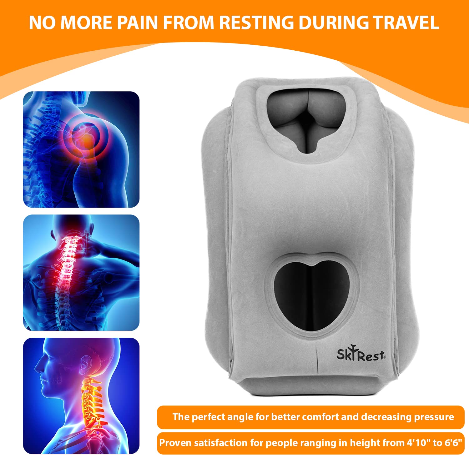 - Sleep Soundly on the Go: Say goodbye to uncomfortable airplane neck pillow for long flight and enjoy a peaceful sleep with Skyrest inflatable travel pillows for airplanes. Our airplane pillow's ergonomic design helps you avoid neck pains and travel fatigue, ensuring you arrive at your destination well-rested. This travel pillow/ plane pillow is essential for long flights. Sleep well with our travel pillows for sleeping on airplanes.
