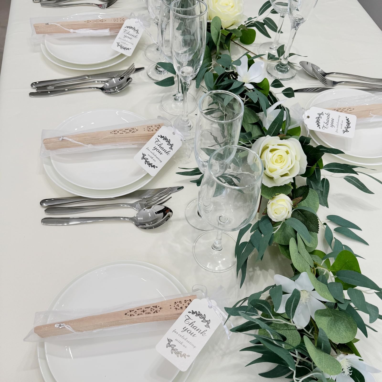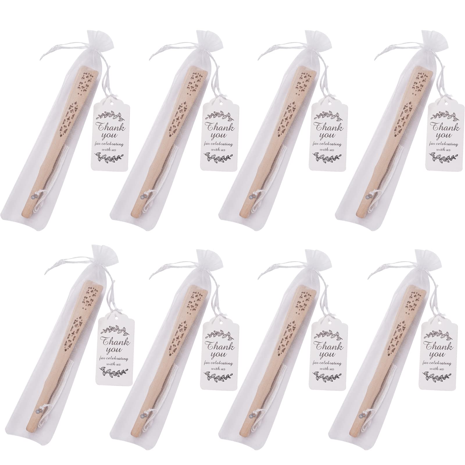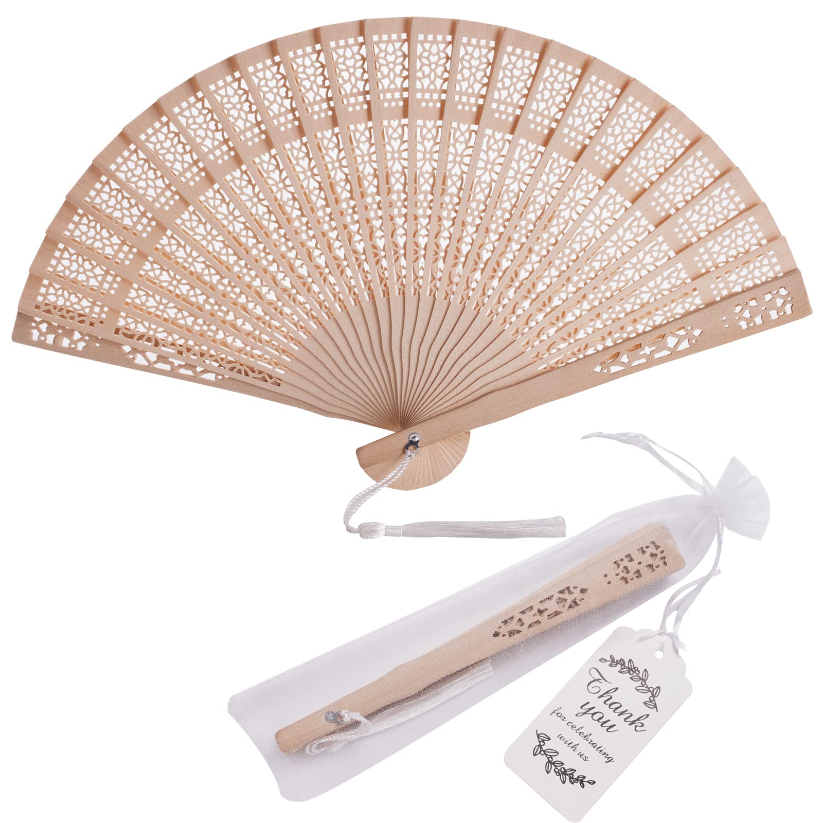 - Package: 50 pcs wooden hand fan with 50 pcs white organza bags and 50 pcs tassels and 50 pcs thank you tags